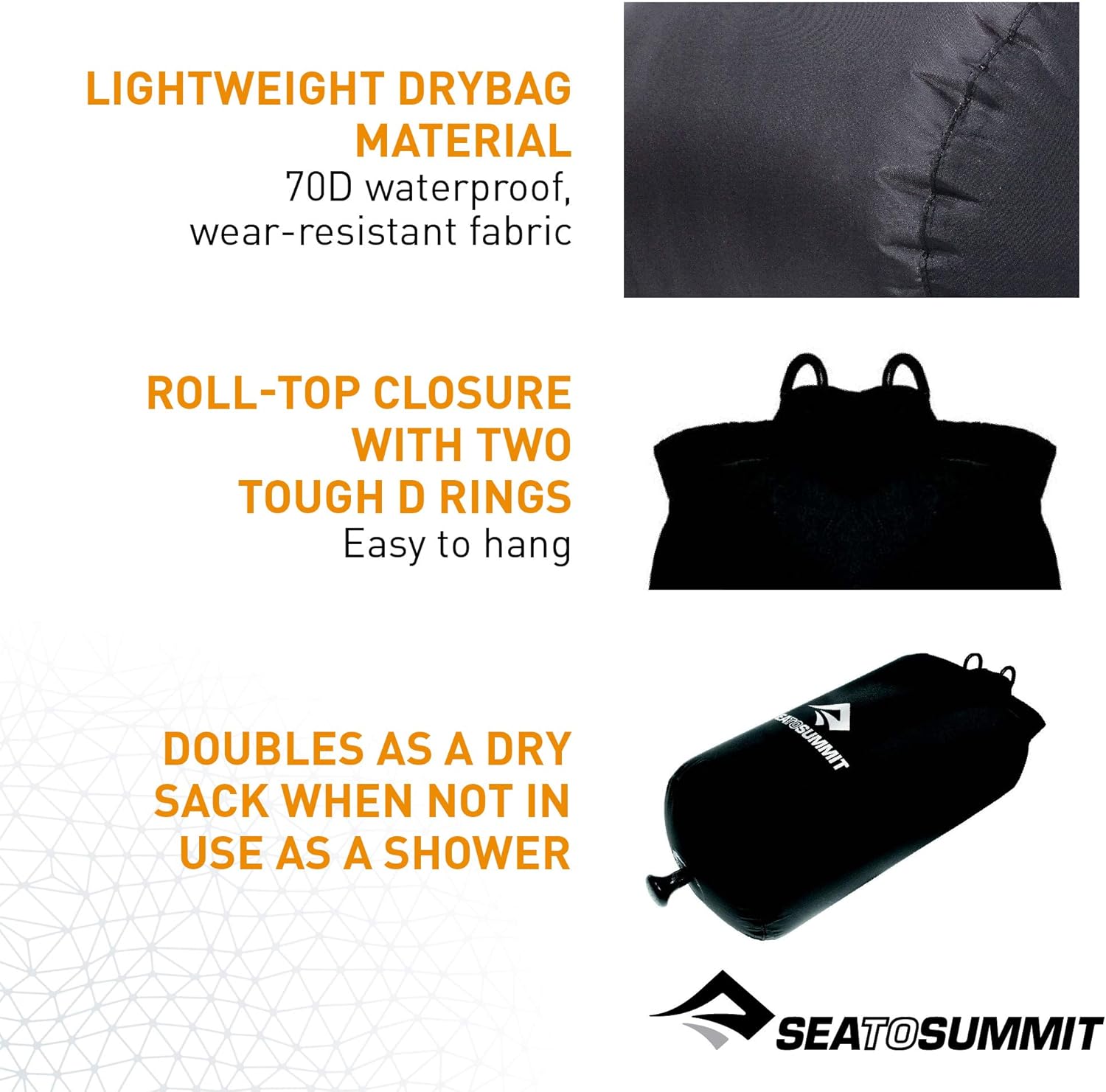 The Sea To Summit Pocket Shower is a travel shower ideal for camping and hiking in the wilderness. The Nylon fabric is treated with a PU coating creating a durable and waterproof fabric. The white PU coating on the inside improves visability when looking at its contents. With a hydrostatic head of 10,000mm this fabric is commonly found in Dry sacks Packs down into a pouch for convenient storage and transportation, making it an ideal item for carrying in a rucksack until needed.