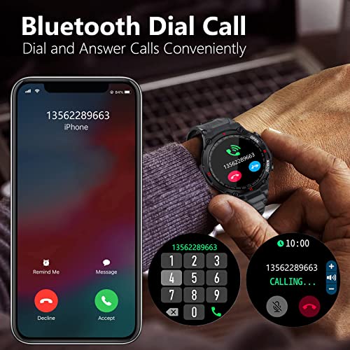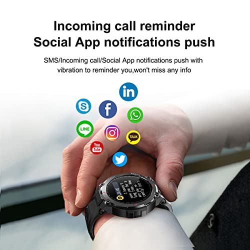 Accurate Health Monitor: The tactical type Fitness Smartwatches is built in lastest AI accurate dynamic detection sensor chip, which bring the whole-day 24h heart rate monitor experience, and provide you the real time accurate data. Smart watch for men is support to accurate track your all-day steps, excersise time, calories, heart rate, sleep monitoring, and offer comprehensive analysis of your exercises and sleep tracker to better understand your physical condition.