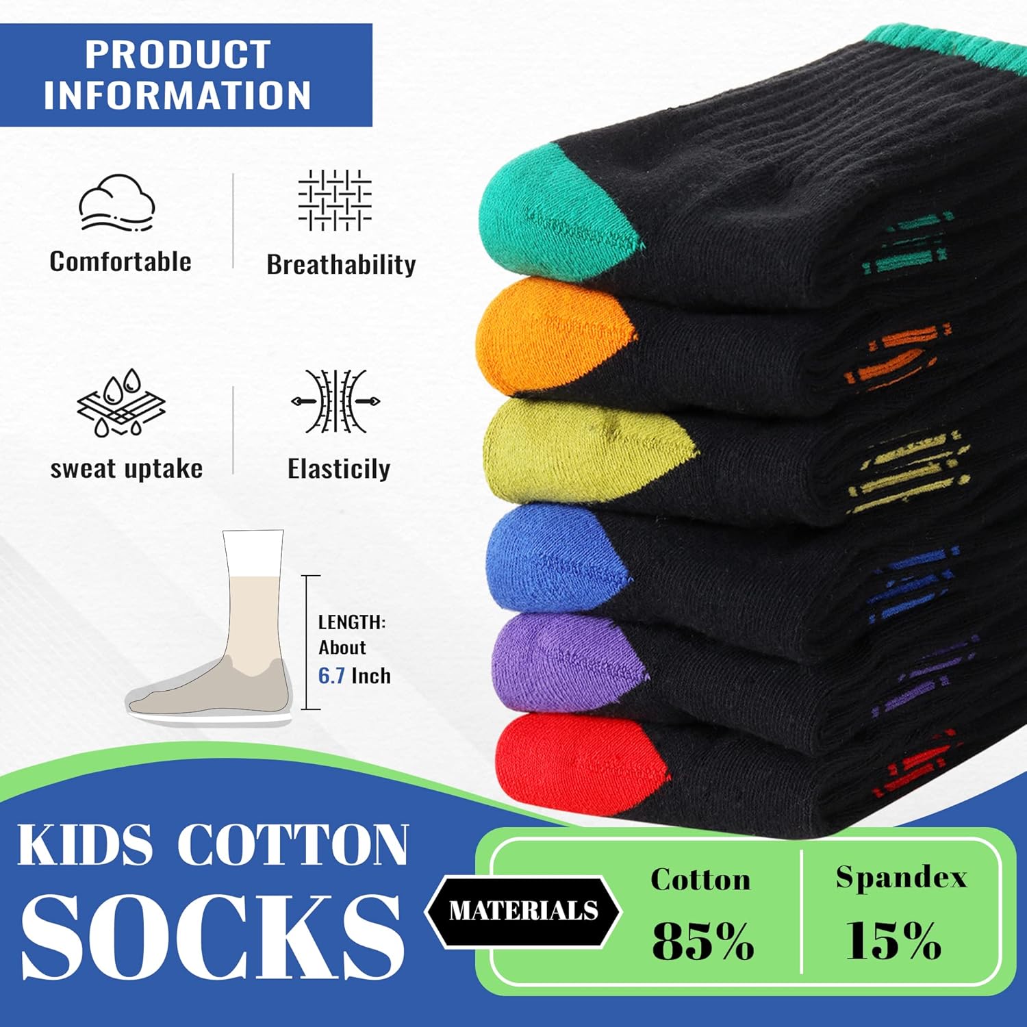 SeeyAN Kids Socks Boys Crew Athletic Half Cushioned Cotton Sport Running Breathable Socks 6 Pairs