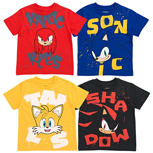 SEGA Sonic The Hedgehog Knuckles Shadow Tails Big Boys 4 Pack T-Shirts Blue/Red/Orange/Black 18-20