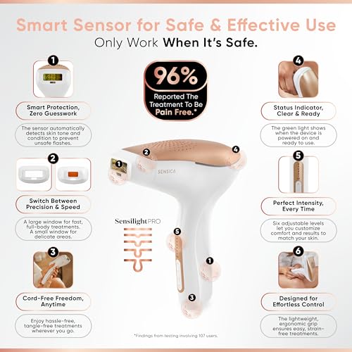 POWERFUL YET SAFE Sensilight PRO features 6 adjustable energy levels, allowing you to choose the level that feels right for you. Patented RPL advanced technology, combined with built-in 2 smart sensors, helps ensure each flash is delivered safely and only when your skin is ready.