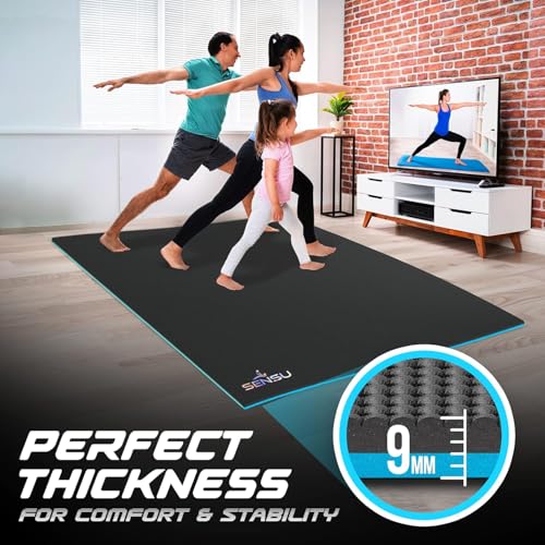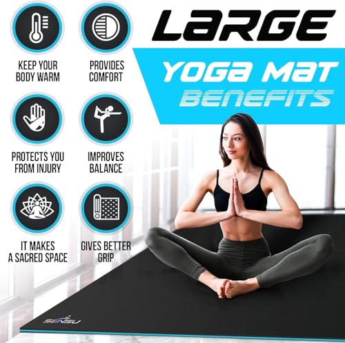 Sensu Large Yoga Mat – 9′ x 6′ x 9mm Extra Thick Yoga Mat for Men and Women – Non-Slip Surface for Extra Grip – Ideal for Hot Yoga, Pilates, Grounding and Meditation at Home or in Studios