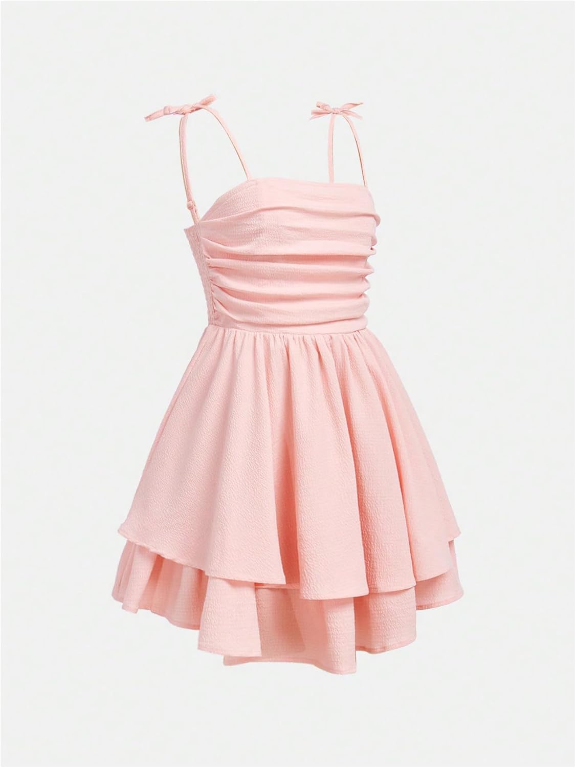 SHENHE Girl’s Smocked Ruched A Line Swing Dress Layered Tie Shoulder Flowy Cami Short Dress
