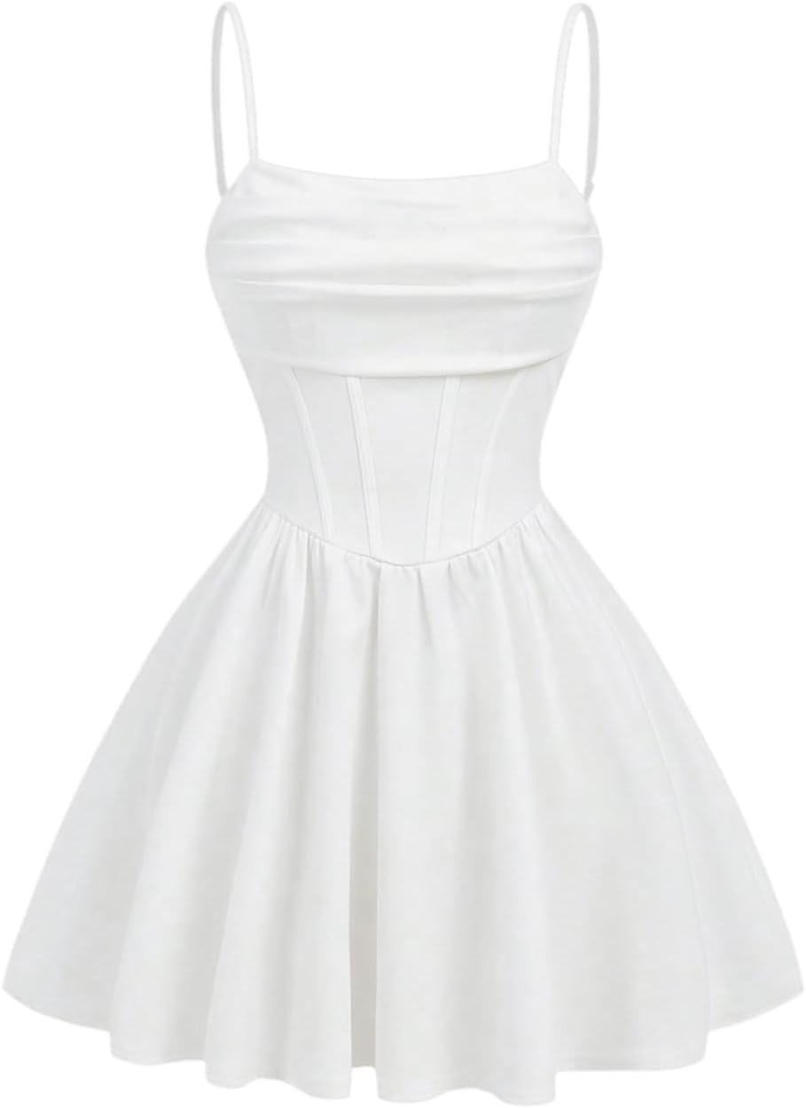 SHENHE Girl’s Spaghetti Strap Corset Dress Pleated A Line Fit and Flare Cami Dress