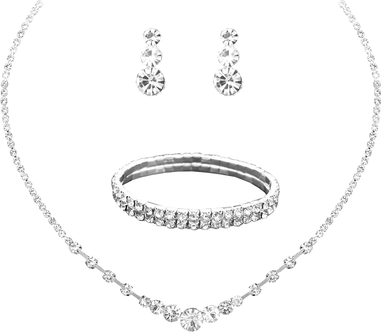 Silver Plated Elegant Necklace Earrings Bride Bridesmaid Jewelry Sets for Wedding Prom Crystal Jewelry Set for Women Costume Accessories
