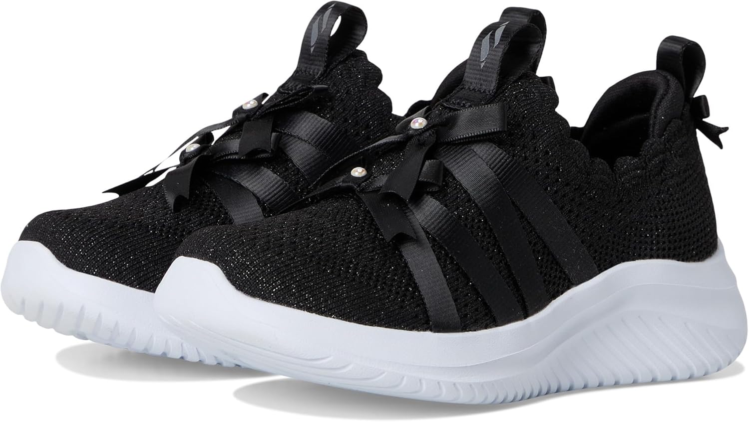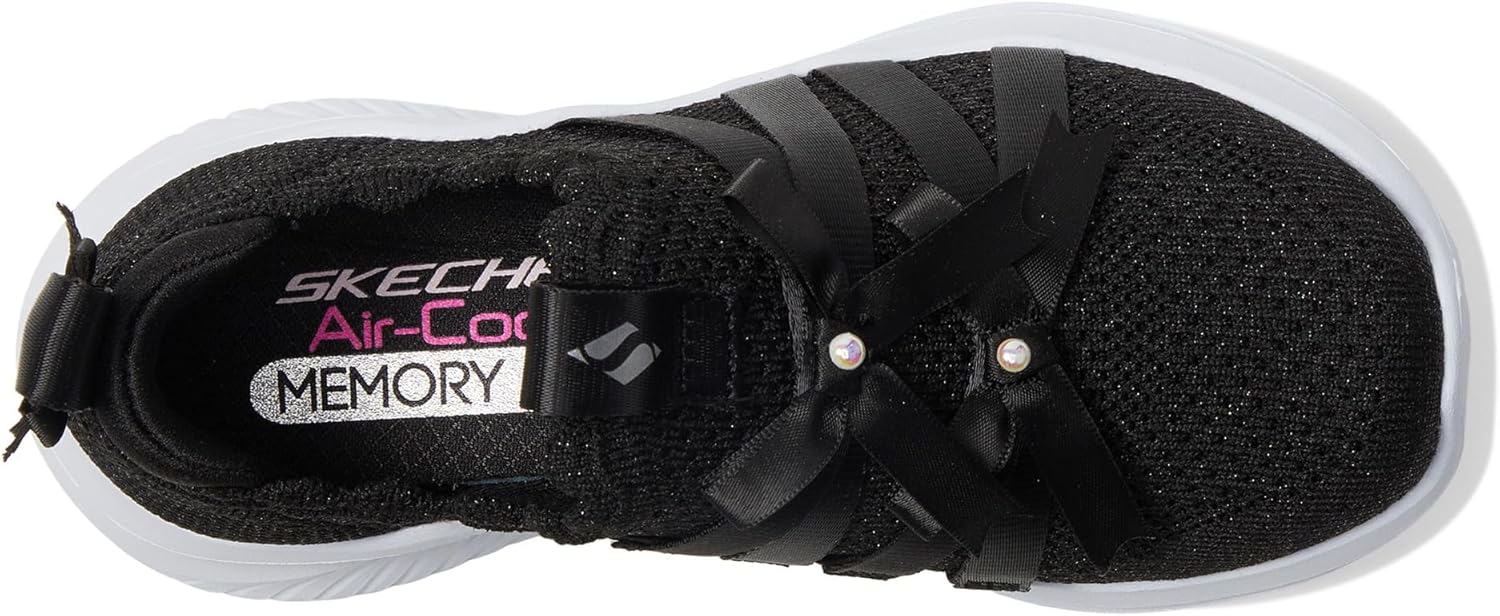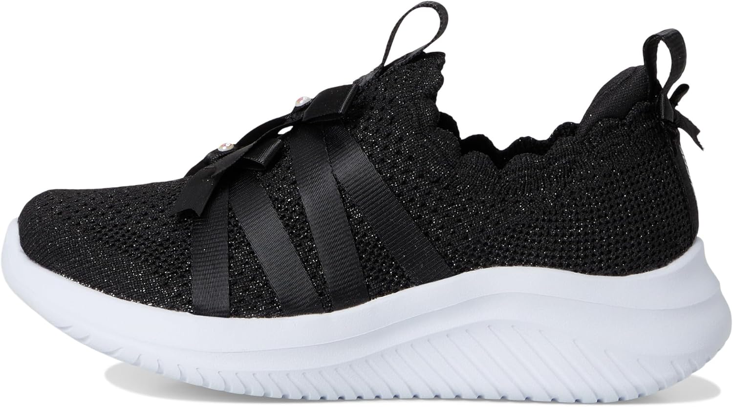 Step into a world of comfort and style with these enchanting Skechers sneakers for kids. The ULTRA FLEX 3.0 features a dazzling black sparkle knit upper that adds a touch of magic to any outfit. The charming bow details elevate the design, providing a perfect balance of sporty and sweet. The stretch fit technology ensures easy on-and-off while offering a secure and comfortable fit for growing feet. Crafted with Skechers’ renowned Ultra Flex technology, these sneakers provide exceptional flexibility and support for active girls. The lightweight and breathable construction keeps feet cool and comfortable throughout the day, making these shoes ideal for school, play, or any special occasion. Whether she’s running errands with mom or attending a friend’s party, the ULTRA FLEX 3.0 sneakers deliver the perfect blend of sparkly style and practical comfort that will keep her feet happy and her confidence soaring.