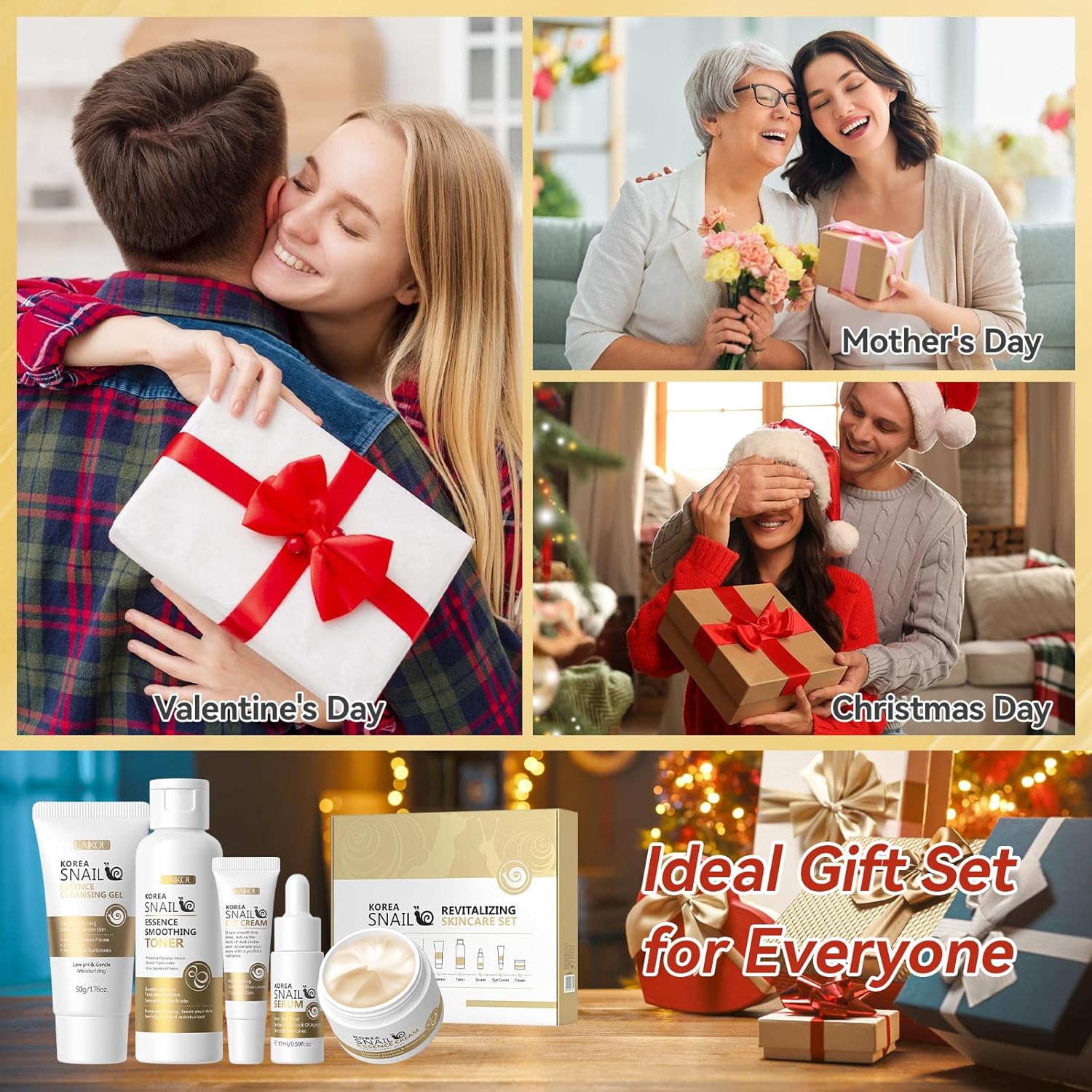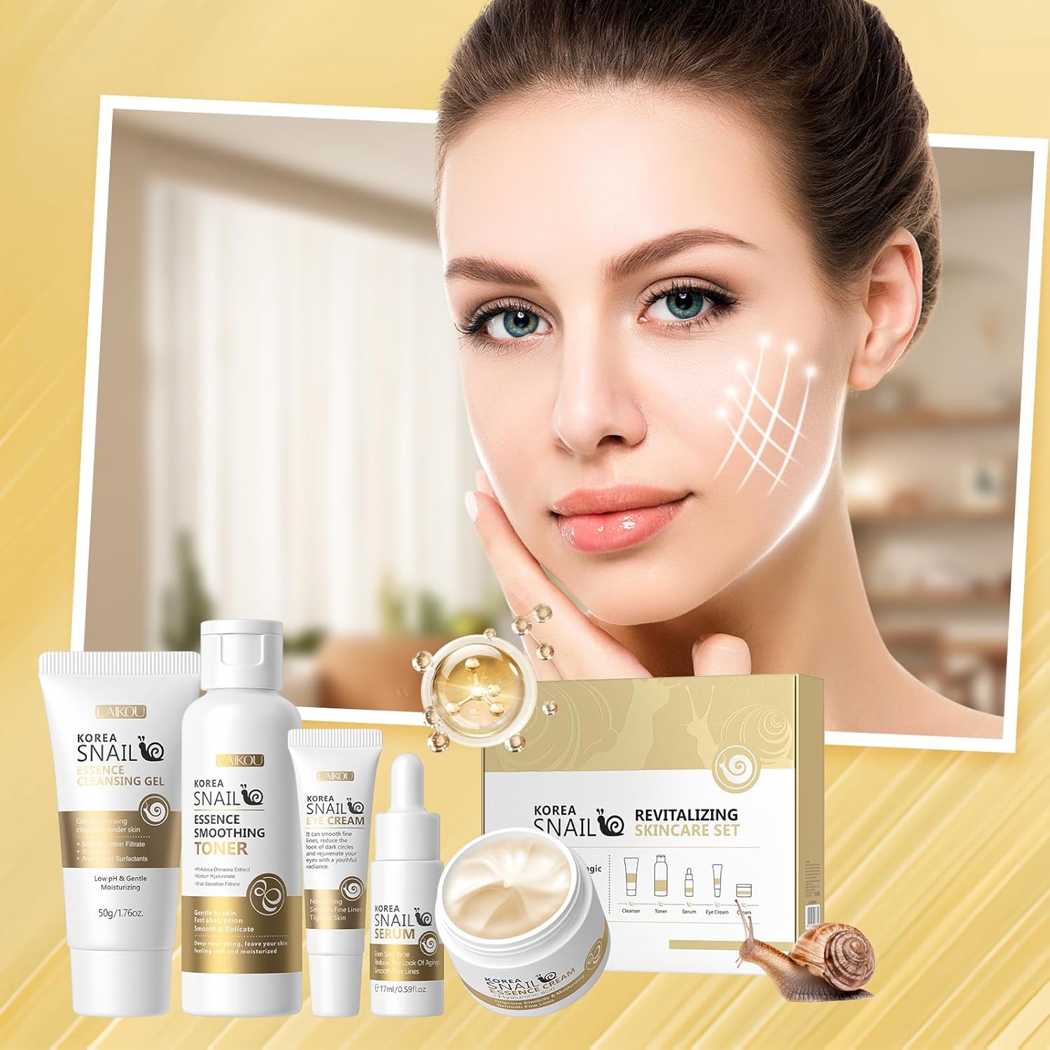 Skin Care Set, Face Snail Revitalizing Skin Care Sets & Kits, Facial Beauty Skincare Gifts for Teenage Girls with Cleanser,Toner,Serum,Eye Cream,Face Cream, Firming Hydrating Skin Care Christmas Gifts