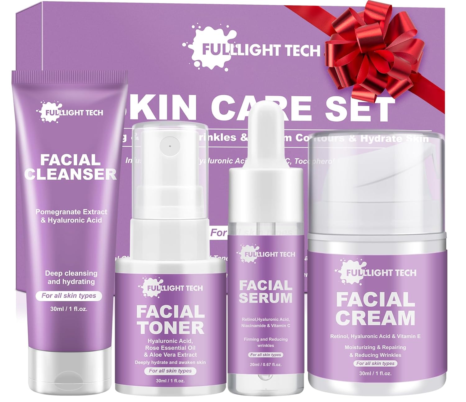Skin Care Set,Anti-aging Beauty Gift Sets for Women Teens Girls,4 Pcs Gentle Facial Skin Care Kit with Cleanser, Toner,Serum, Face Cream Travel Skincare Kit,TSA-friendly Face Care Stocking Stuffers