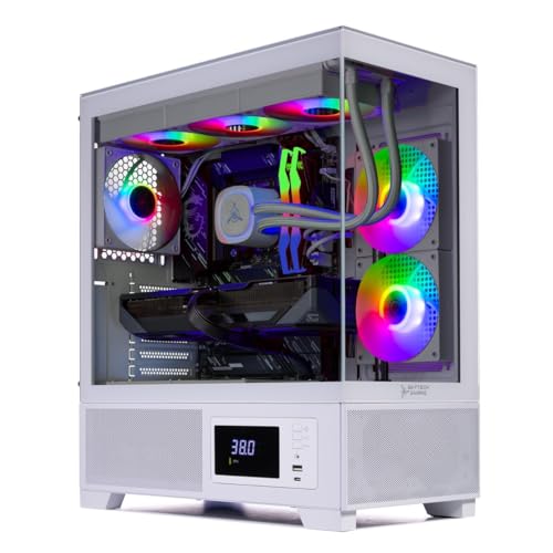 High-spec AIO liquid coolers used, delivering unmatched cooling performance for a perfect operational experience and unparalleled cooling performance. With hardware unrestricted by temperature limits, you can unleash its full potential. Whether gaming, creating, or working, you’ll never suffer from thermal throttling again. | Skytech Azure Gaming Case with Tempered Glass, White | 1 Year Warranty on Parts and Labor | Free Technical Support | Assembled in the USA