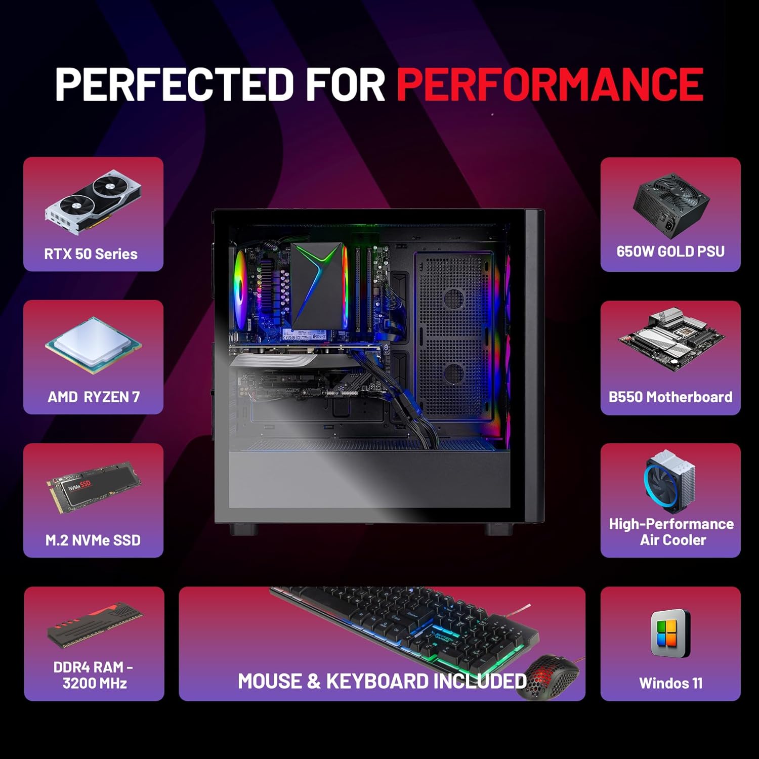 This powerful gaming PC is capable of running all your favorite games such as Call of Duty, Fortnite, Escape from Tarkov, Grand Theft Auto V, Valorant, World of Warcraft, League of Legends, Apex Legends, PLAYERUNKNOWN’s Battlegrounds, Overwatch 2, Counter-Strike 2, Battlefield V, Minecraft, ELDEN RING Shadow of the Erdtree, Rocket League, Baldur’s Gate 3, Dota 2, HELLDIVERS 2, Monster Hunter, Terraria, Rainbow Six Siege, Dragon’s Dogma 2, Black Myth Wukong, Marvel Rivals, more at Ultra settings, detailed 1080p Full HD resolution, and smooth 60+ FPS gameplay.