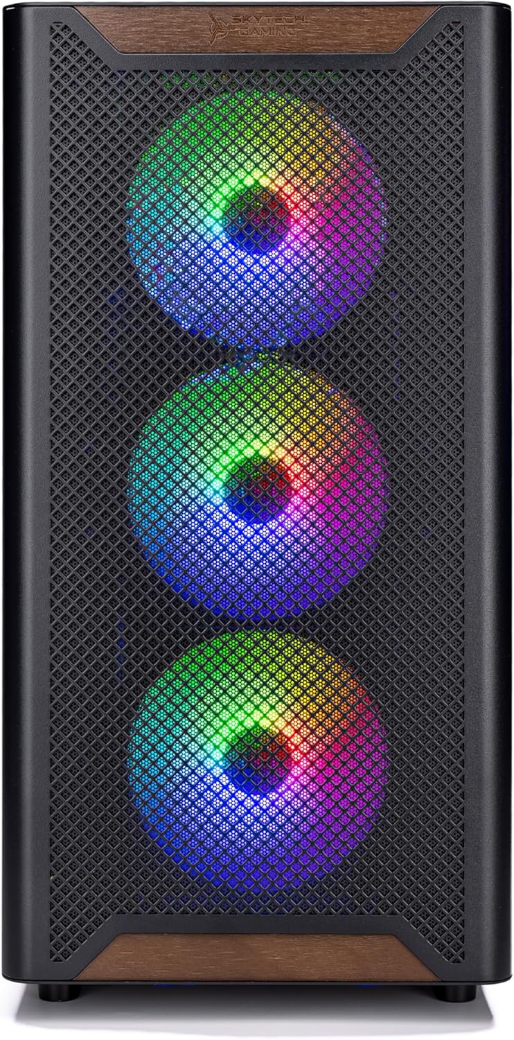 High-Performance Air Cooler: Maximum Airflow & ARGB Fans | Skytech Chronos Case Black Edition with Front Mesh | 1 Year Warranty on Parts and Labor | Free Technical Support | Assembled in the USA