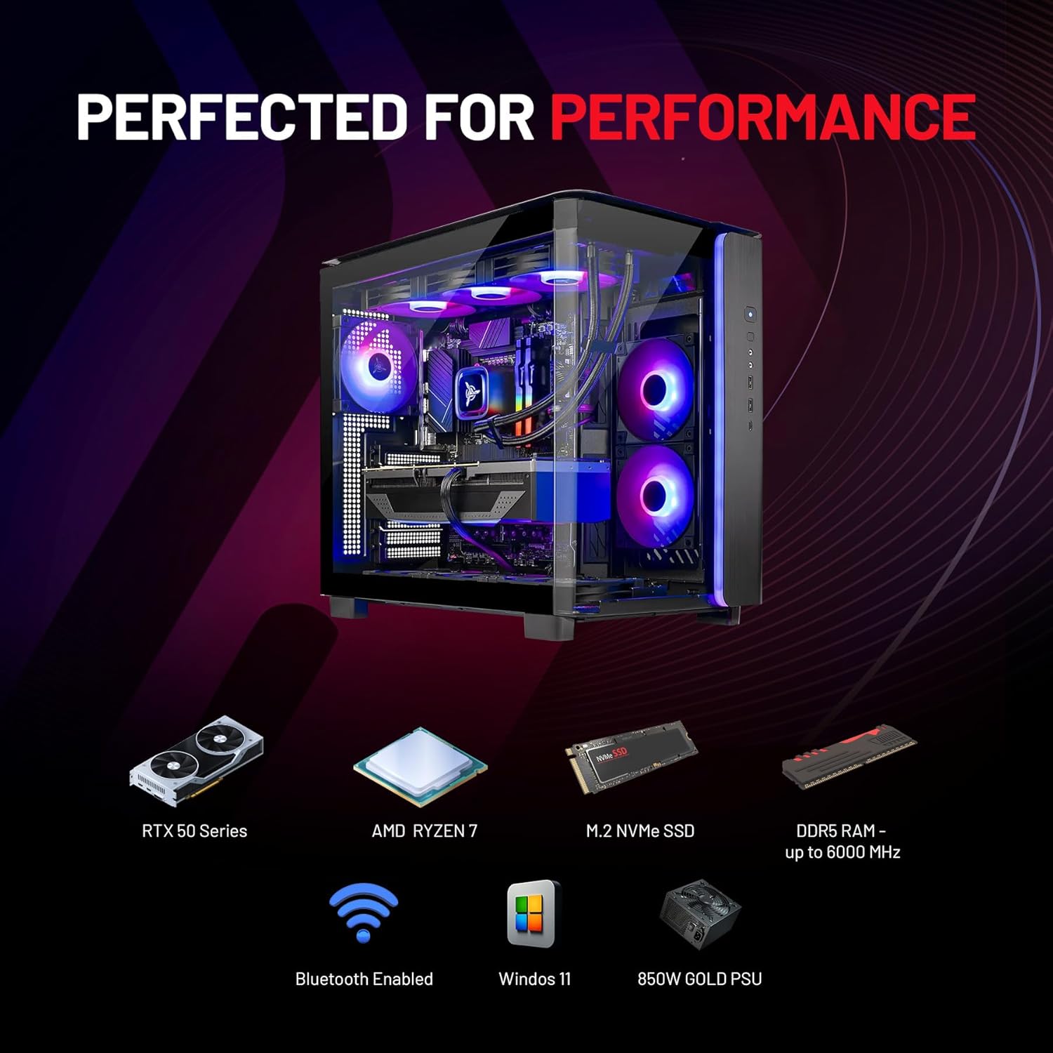 Skytech King 95 Gaming PC Desktop, Ryzen 7 9700X 3.8 GHz (5.5GHz Turbo Boost), NVIDIA RTX 5070 12GB GDDR7, 1TB Gen4 SSD, 32GB DDR5 RAM 6000 RGB, 850W Gold PSU, 360mm ARGB AIO, Wi-Fi, Win 11 Home