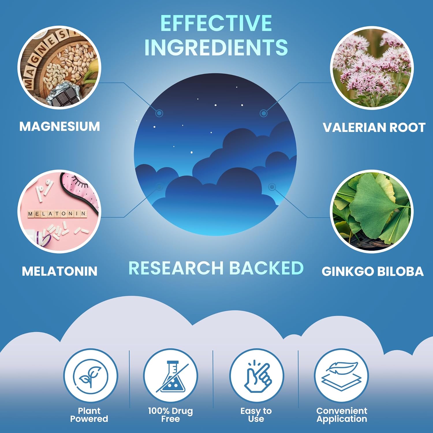 Sleep Patches for Adults Extra Strength | Easy-to-Apply Sleep Patch with Melatonin & Valerian | Relax & Wake Up Refreshed | Long-Lasting Night Comfort for Men & Women | 60 Patches