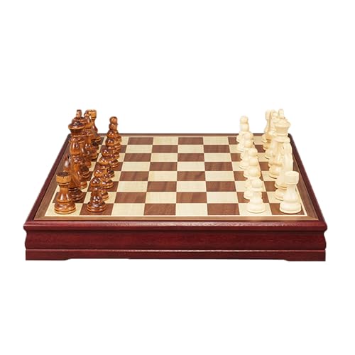 SLGGPJBU International Chess Wood Chess Set Professional Chess Board with Chess Pieces and and Storage Slots Family Game Chess Set Traditional Game Chess Gifts