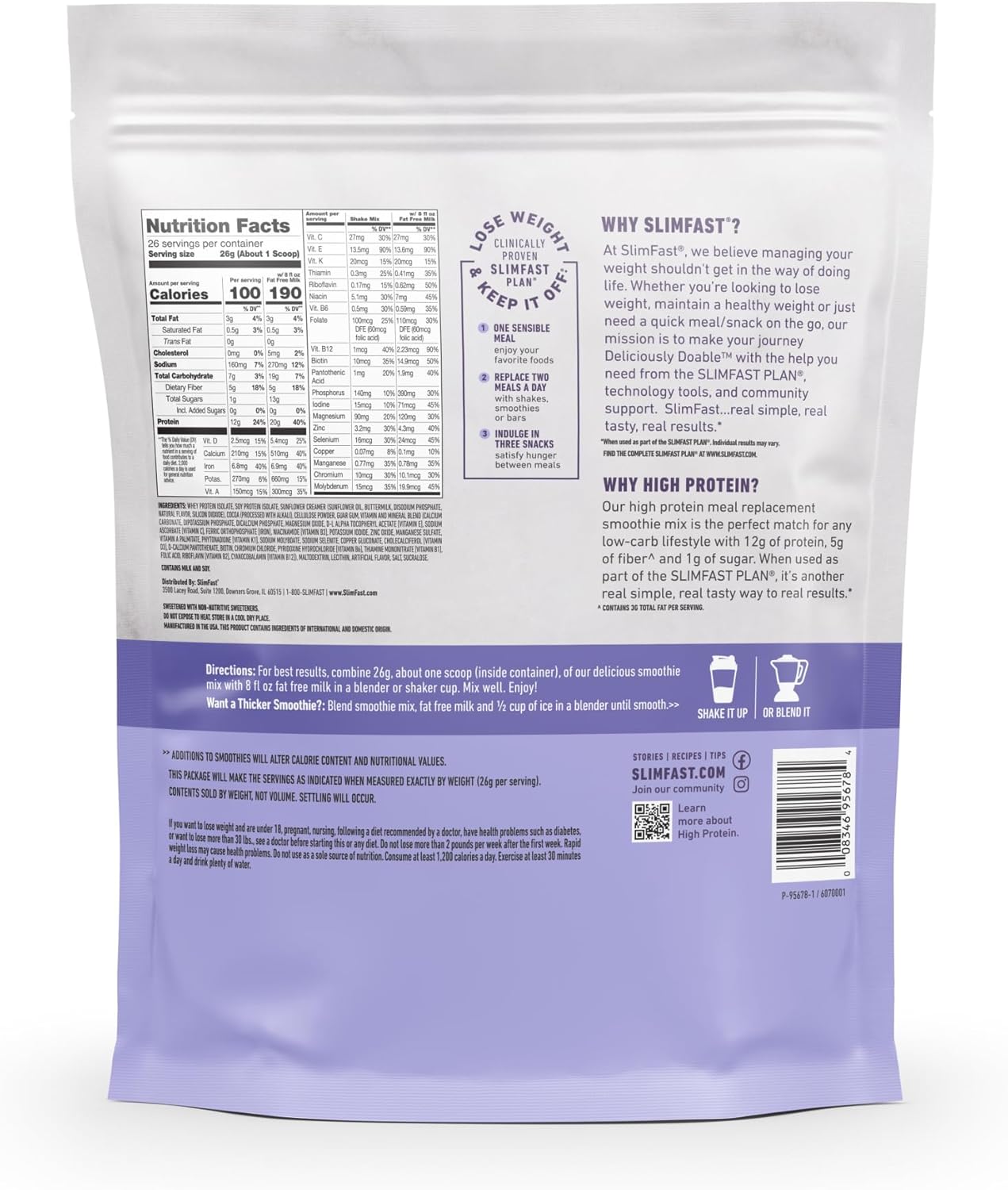 ON THE GO NOURISHMENT: At SlimFast, we understand that dieting can be hard. With 24 servings, our Smoothie Mix is perfect for on the go, anytime meal replamement. Pack a serving of our smoothie mix with you or keep one at work and one at home, so that you always have a quick, healthy indulgence that will keep you full and help you stay on track wherever your busy schedule takes you