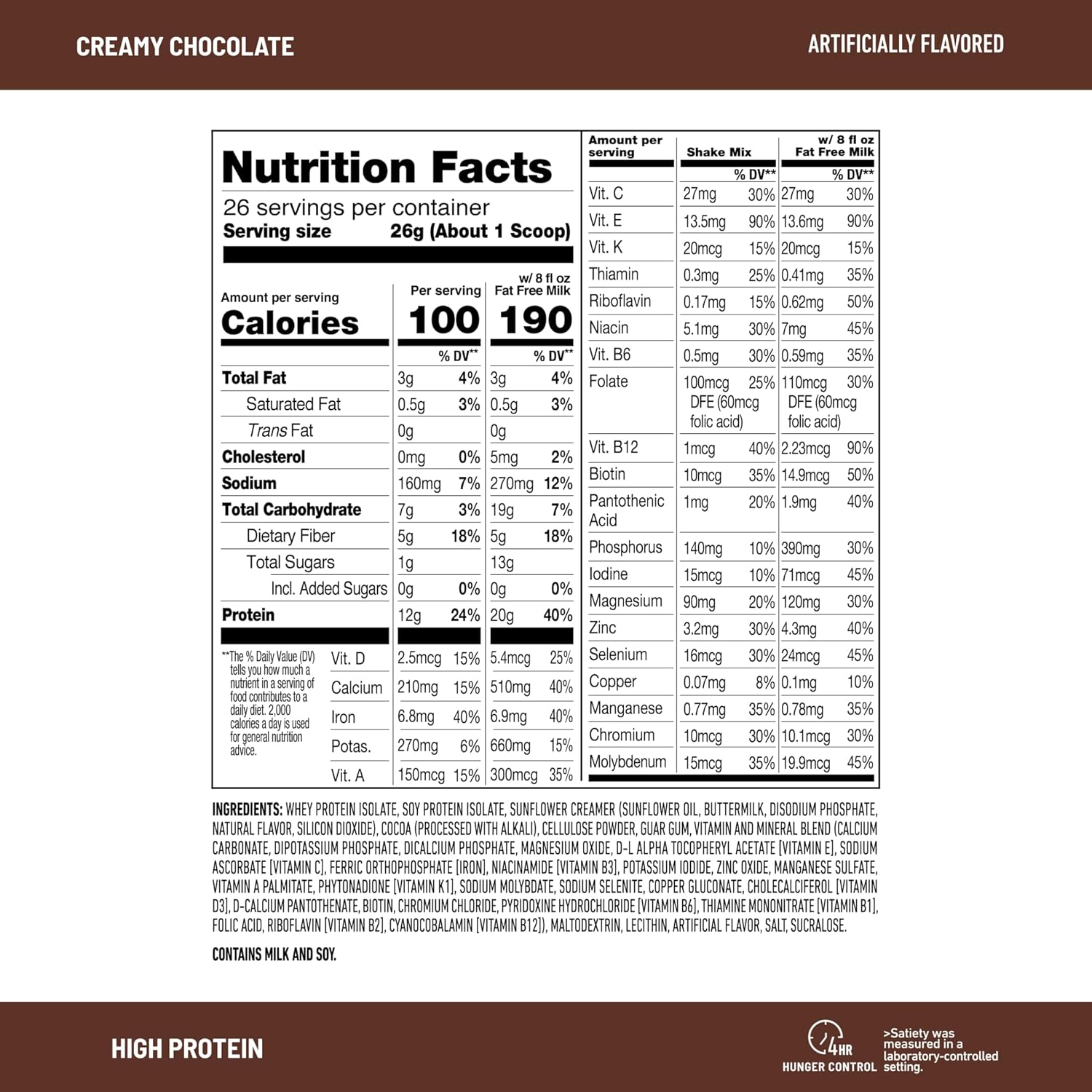 HIGH PROTEIN SHAKE: SlimFast High Protein Meal Replacement Shakes are the perfect diet friendly smoothie mix. Each serving is packed with 12g of Protein and 20g of Protein when combined with 8 oz of Fat Free Milk to keep you full for hours with a decadent rich and creamy chocolate flavor to satisfy your sugar cravings