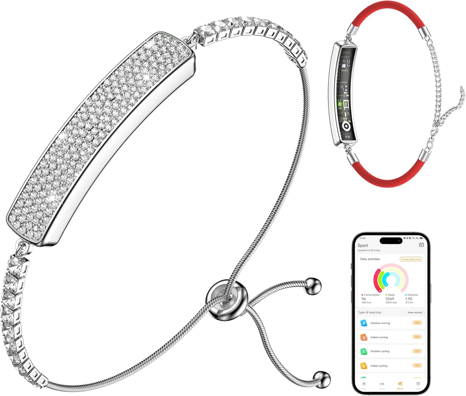 【Luxurious Design & Lightweight Comfort】 This lightweight smart bracelet for women blends luxury with retro aesthetics. Adorned with sparkling colored stones, weighing only 11g with an ergonomic curved shape for a second-skin fit—perfect for all-day wear at work, exercise, or sleep. Includes interchangeable straps for versatile styling.