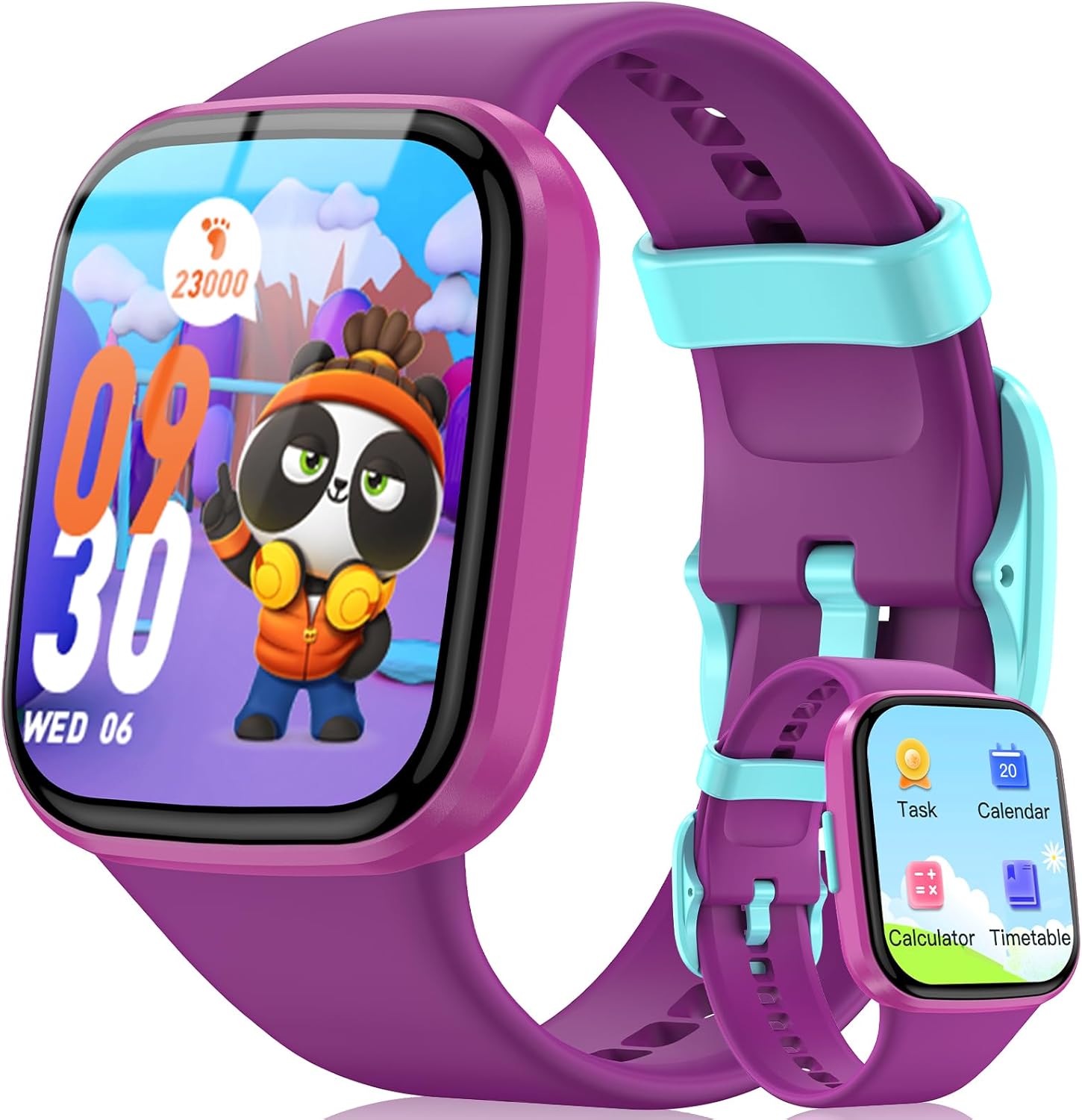 【Perfect Gift for Kids Age 4-12】This kids smart watch is designed with a PC+ABS frame and soft silicone wristband. 1.69″ TFT HD color touch screen, making it easy for small hands to operate. The kids watch is a perfect blend of learning, entertainment and convenience that helps kids grow and have fun simultaneously. Perfect birthday, Christmas, festival, and holiday gifts for boys and girls aged 4-12.