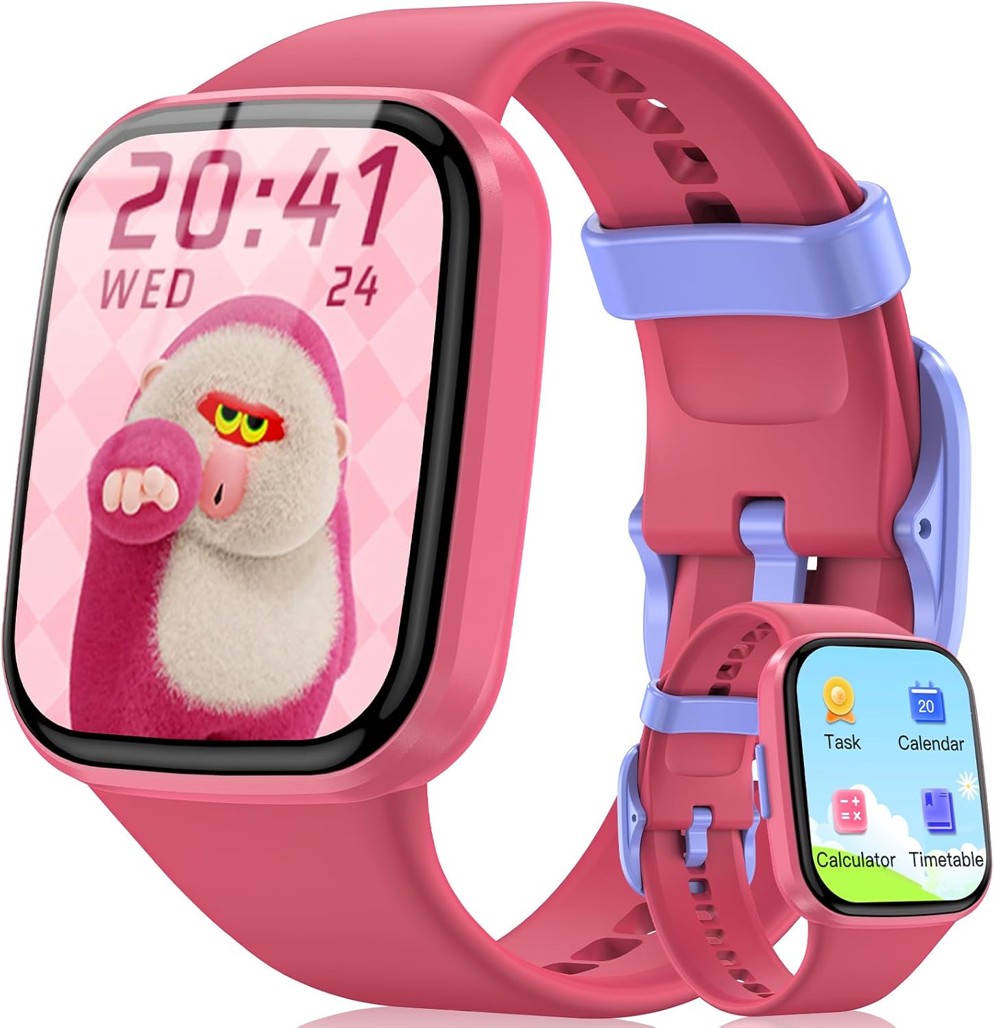 【Muti-Functional Smart Watch for Kids】 The smart watch for kids with heart rate/sleep monitoring, Tasks and Rewards, Course Schedule, Alarm Clock, Custom Dial, Stopwatch, Countdown, Calculator, Pedometer, Calendar, 20 Sport Modes (Running, skipping rope, walking, cycling, football, basketball, badminton and more), Intelligent Reminder (sedentary & drink water reminder). Which can bring convenience, fun and new experience to children’s lives.