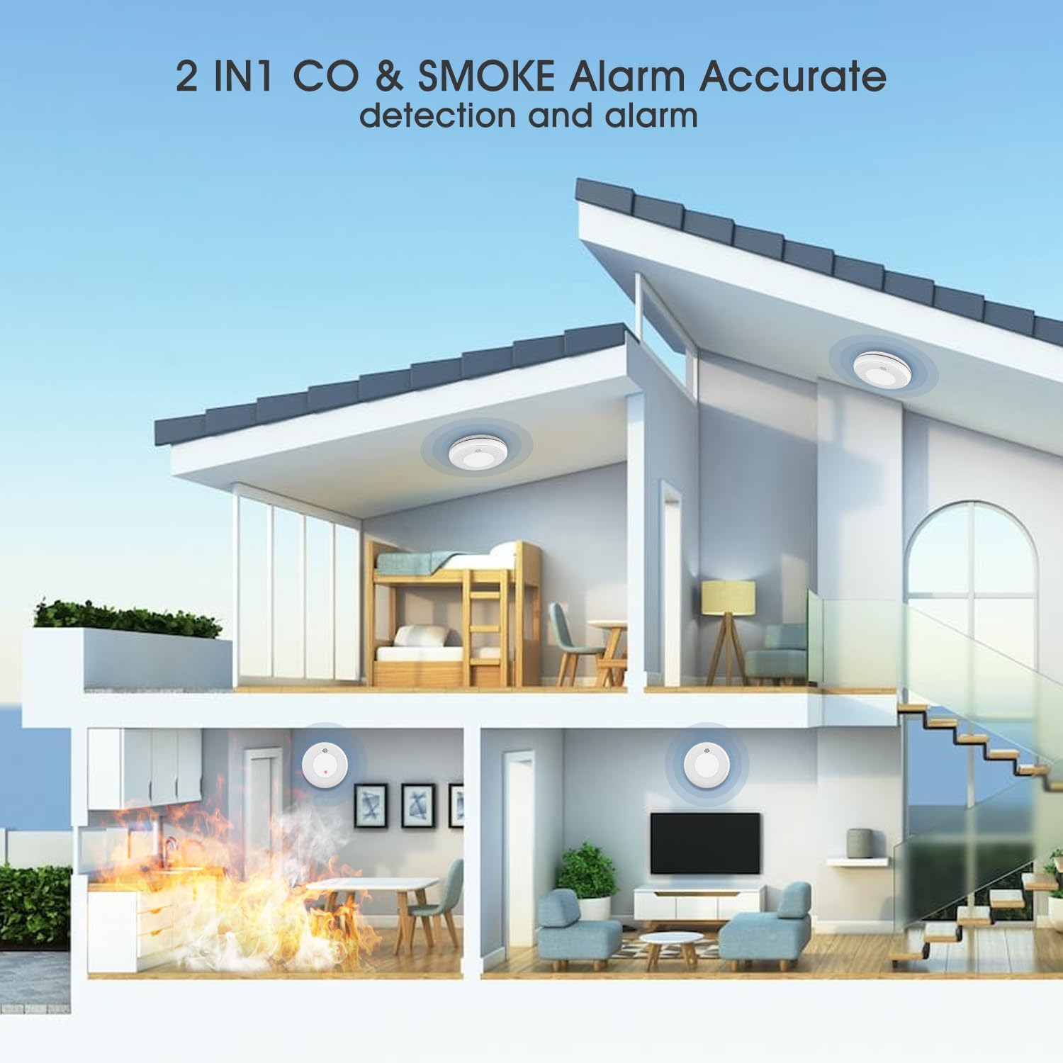 Long battery life: This smoke and carbon monoxide detector built-in 3 V CR123A lithium battery for continuous 10 years power supply, energy efficient and environmentally friendly, extremely long standby time. Provides you and your family a safe sleeping environment
