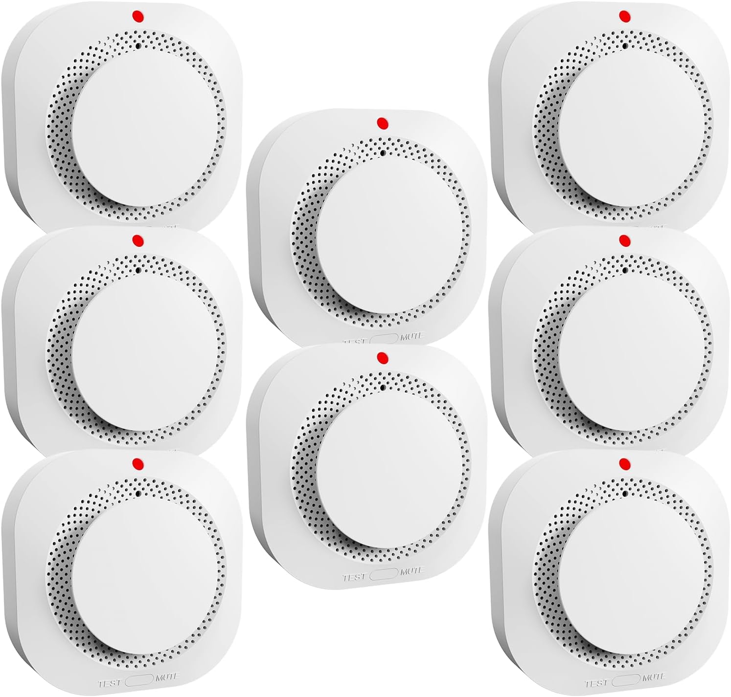 Smoke Detectors for Home,Photoelectric Wireless Fire Alarms Replaceable Battery Powered,Portable Smoke Alarm with Test/Mute Button,Attic Smoke Detector,8 Pcs(Battery Not Included)