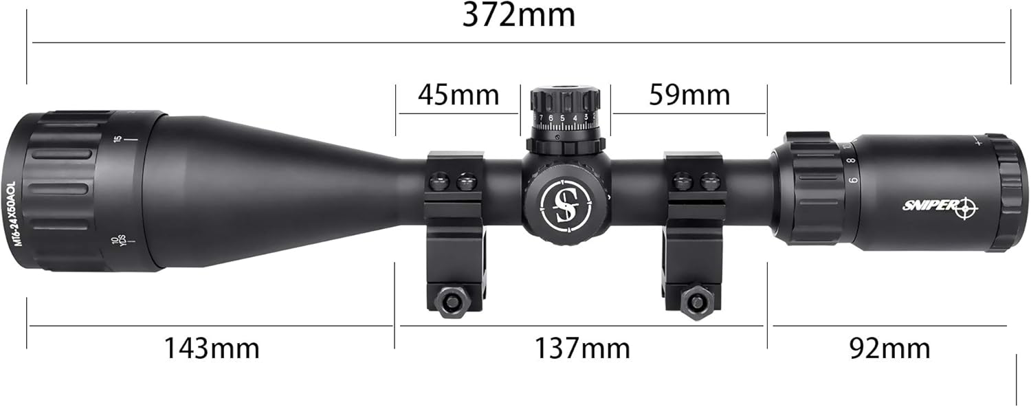 Specification: SNIPER Rifle Scope MT 6-24×50 with Red/Green/Blue Illuminated Reticle Riflescope, Adjustable Objective