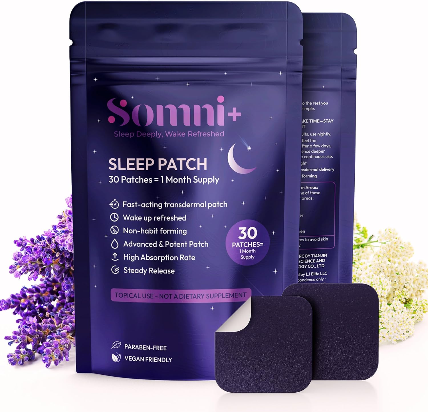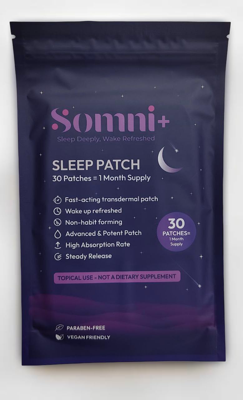 Somni+ Sleep Patches for Adults – 5mg Melatonin Patch – Gradual Release – Natural and Non-Habit Forming – Transdermal Sleep Aid – 30 Count