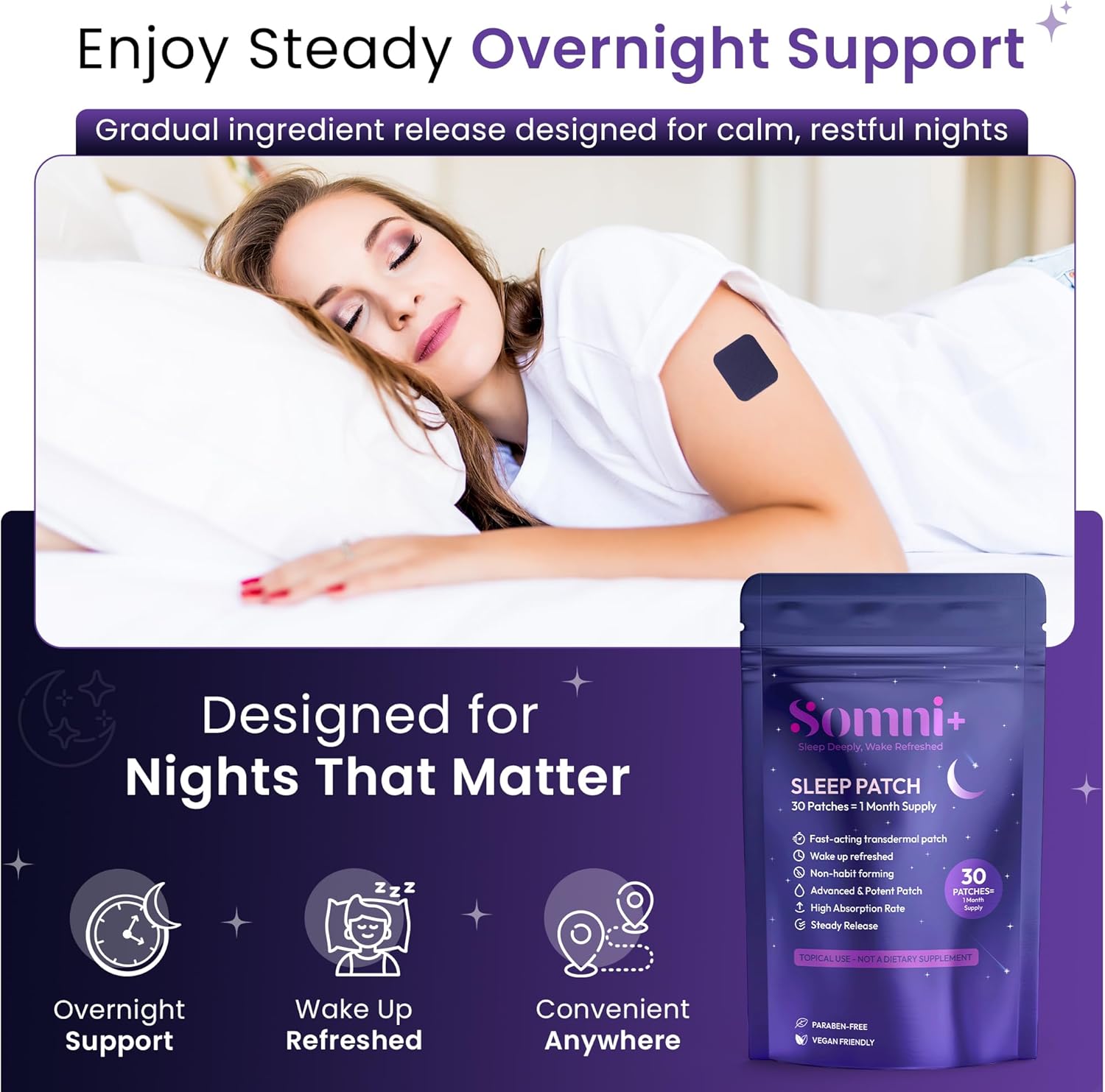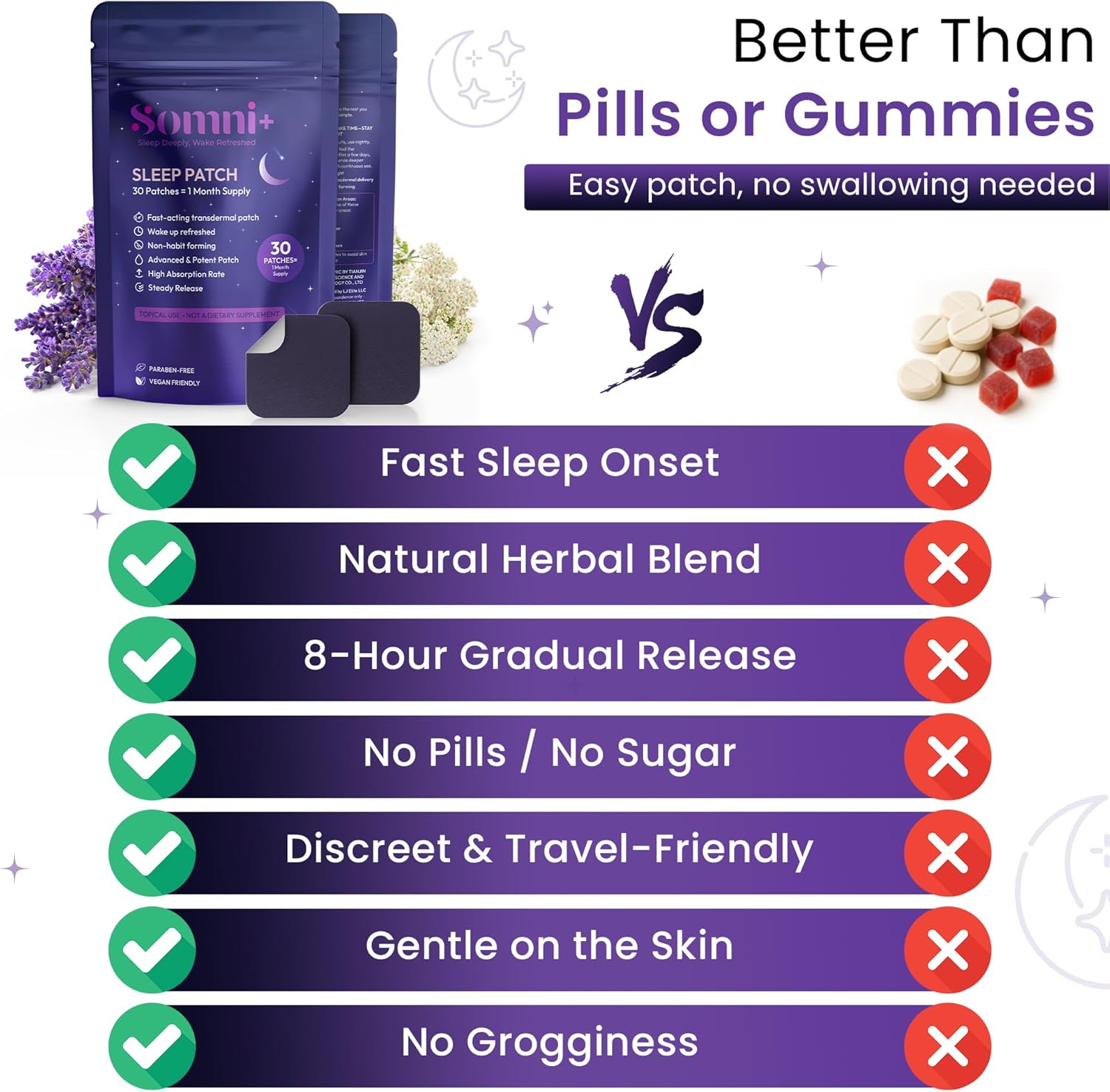 Travel-ready sleep patches for restful nights anywhere: Discreet, breathable patches support consistent sleep while traveling, working late, or managing irregular schedules; includes 30 patches for portable, on-the-go wellness support