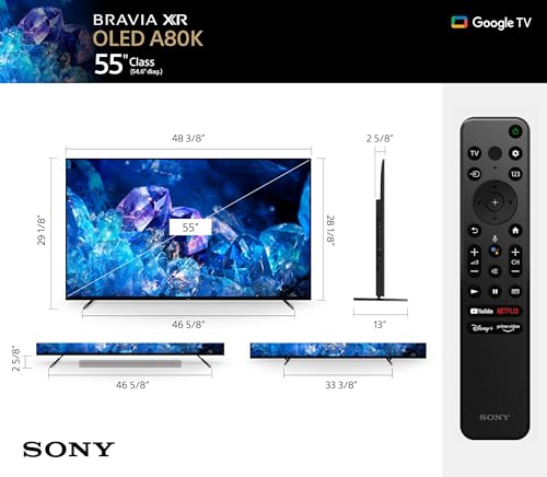 Sony OLED 55 inch BRAVIA XR A80K Series 4K Ultra HD TV: Smart Google TV with Dolby Vision HDR and Exclusive Gaming Features for The PlayStation® 5 XR55A80K- 2022 Model
