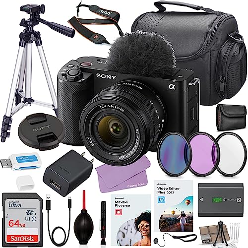Sony ZV-E1 Mirrorless Camera with 28-60mm Lens (Black ILCZVE1L/B) Bundle + Accessory Kit with Sandisk 64GB Memory, Filters, Tripod, Case, 5 in 2 Video/Photo Editing Software Package & More (30 Items)