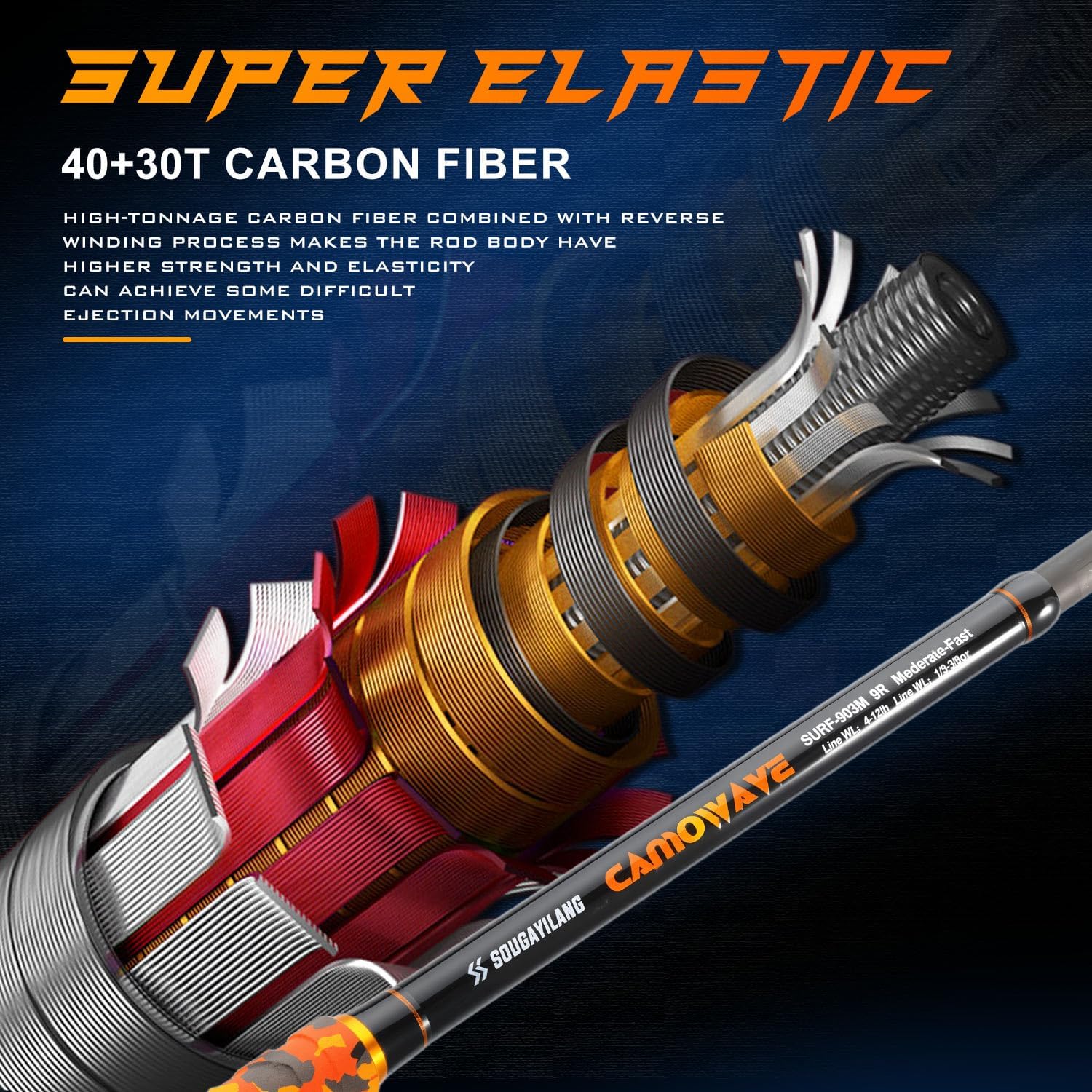 Maxed-Out Casting Distance, Perfect for Surf Fishing: These 9-12ft spinning rods are made with high-modulus carbon fiber, boasting strong backbone. When casting, they efficiently transfer power to the rod tip for “catapult-style long casts,” easily covering the 30-80m effective fishing zone in surf areas.