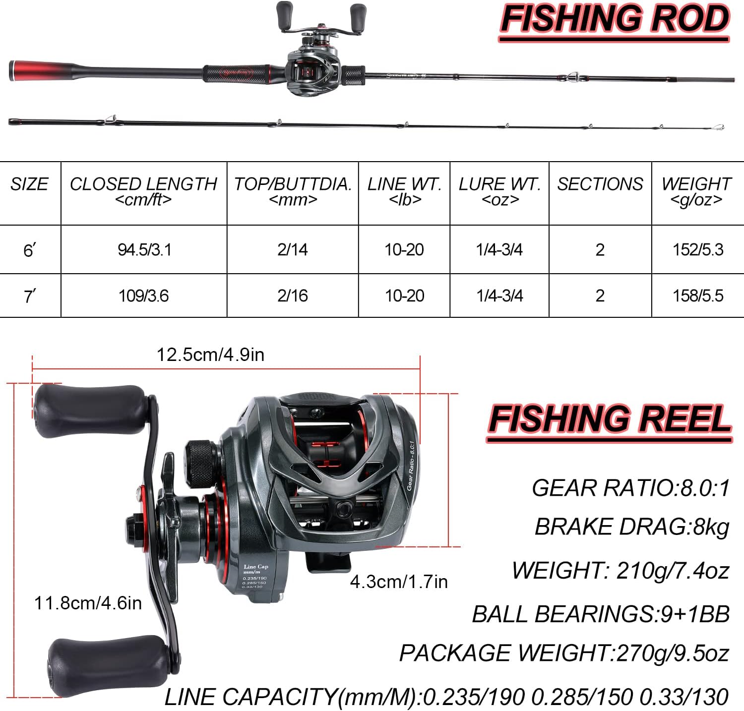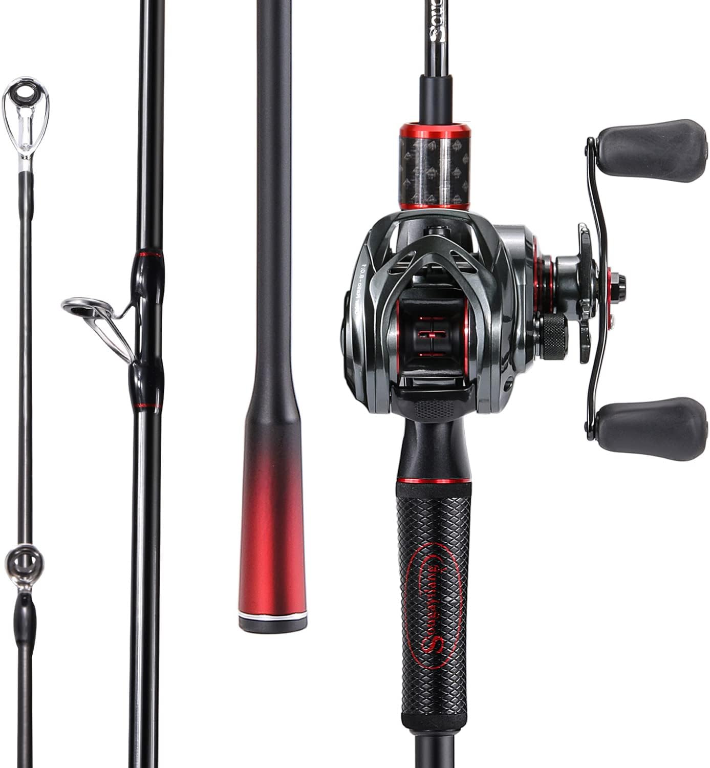 Sougayilang Baitcasting Fishing Rod and Reel Combo, Medium 6’/7′ Low Profile with SuperPolymer Handle