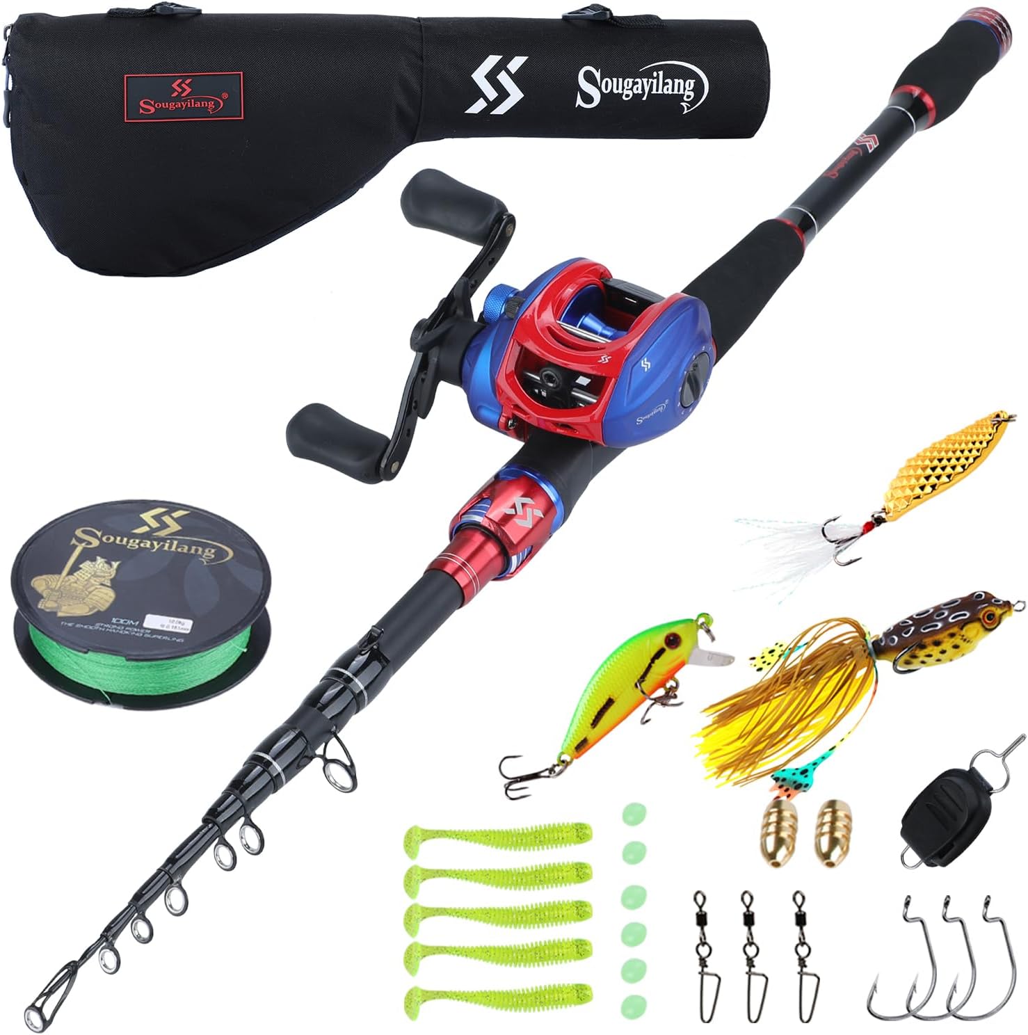 Sougayilang Fishing Rod and Reel Combo, Telescopic Fishing Pole with Baitcasting Reel Combo, 2-Piece Baitcaster Fishing Combo