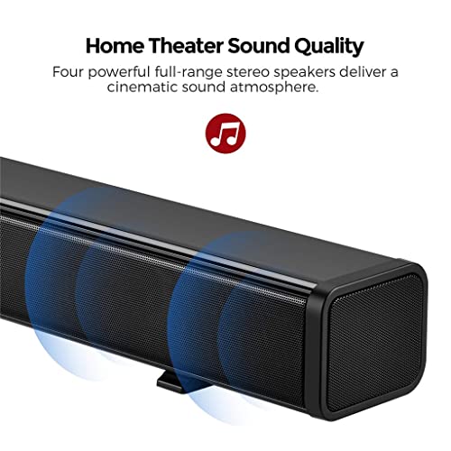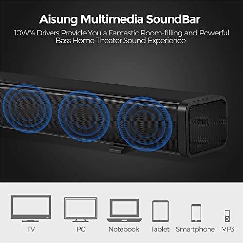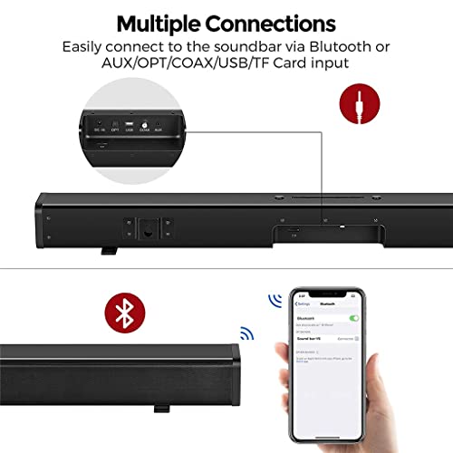 Four powerful full-range stereo speakers deliver a cinematic sound atmosphere.10W*4 Drivers Provide You a Fantastic Room- flling and Powerful Bass Home Theater Sound Experience.Easily connect to the via Blutooth or AUX/OPT/COAX/USB/TF Card input.U Disk/TF Card/AUX Music Playing Format: MP3Audio Input: USB, AUX, Optical, Coaxial, TF Card