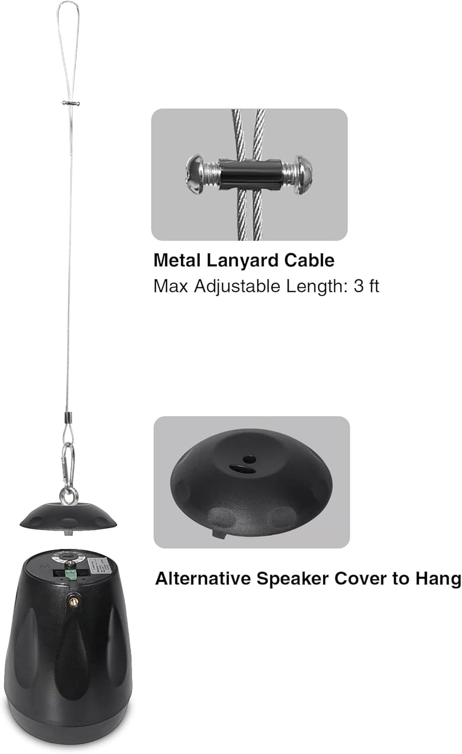 Specification: Sound Town Commercial Restaurant Bluetooth Amplifier + Pendant Speaker Set, with One 2-Zone 70V/100V Amplifier with Bluetooth, 4 x All-Weather 4-Inch Pendant Speakers, Black (PAC80X4PD4B)