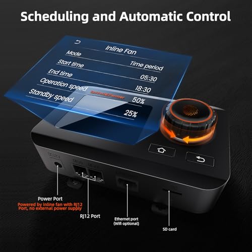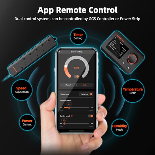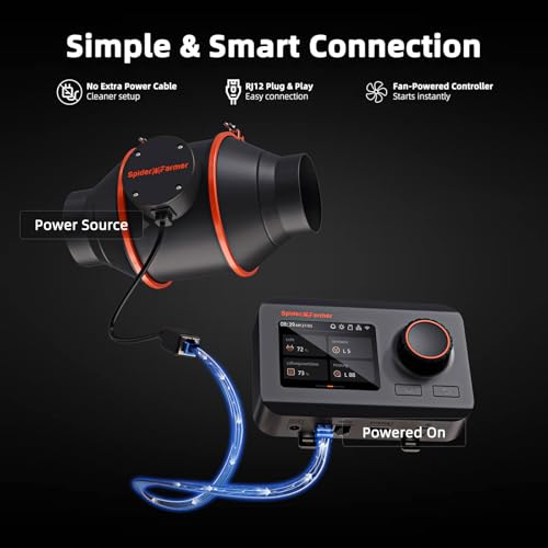 𝐈𝐧𝐭𝐞𝐠𝐫𝐚𝐭𝐞𝐝 𝐀𝐩𝐩 𝐂𝐨𝐧𝐭𝐫𝐨𝐥: Connect to the Spider Farmer App via WiFi to control the inline fan anytime, anywhere. Includes temperature and humidity sensor for climate monitoring and automated regulation.The GGS Controller is powered through its RJ12 port and does not require an external power supply.