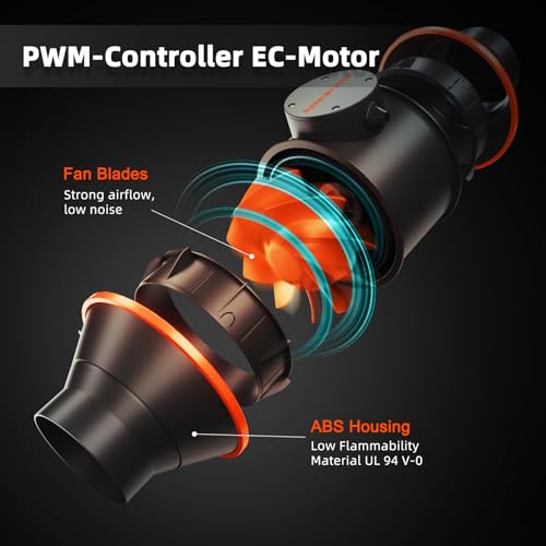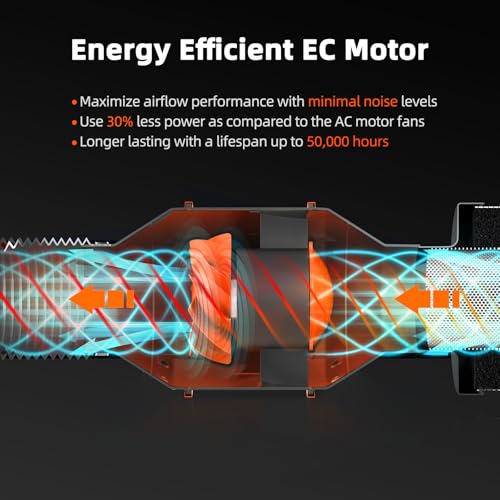 𝐐𝐮𝐢𝐞𝐭 𝐚𝐧𝐝 𝐏𝐨𝐰𝐞𝐫𝐟𝐮𝐥: EC motor ensures energy efficiency: 62 watts, 402 CFM airflow, 32 dB noise. Lightweight ABS blades increase airflow by 40%. ETL/FCC listed, safe to use