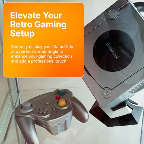 SplashNColor Display Stand Compatible with Nintendo Gamecube – Corner Console One-Piece Design – Perfect for Displaying Game System Without GBP – Retro Gaming Stand Game Player Stand – ABS (Black)