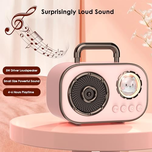SpringFlora Wireless Bluetooth Speaker, Cute Mini Portable Speaker,Loud Sound,4H Playtime, Mic,TF/SD Card, Aux Line,Water-Proof for iOS Android Smartphone Home Office Gift Ideas Light Pink