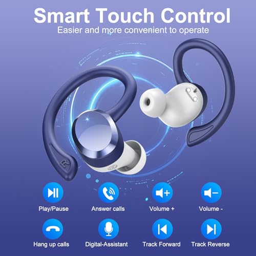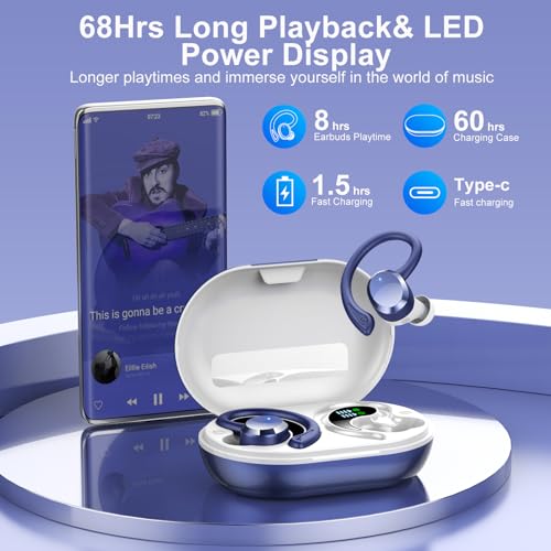 sprtoybat Wireless Earbuds, 2026 New Bluetooth 5.4 Headphones Sport Earphones with 68Hrs Playtime LED Display ENC Noise Cancelling Mic, IPX7 Waterproof Over Ear Ear Buds with Hook for Sports/Running