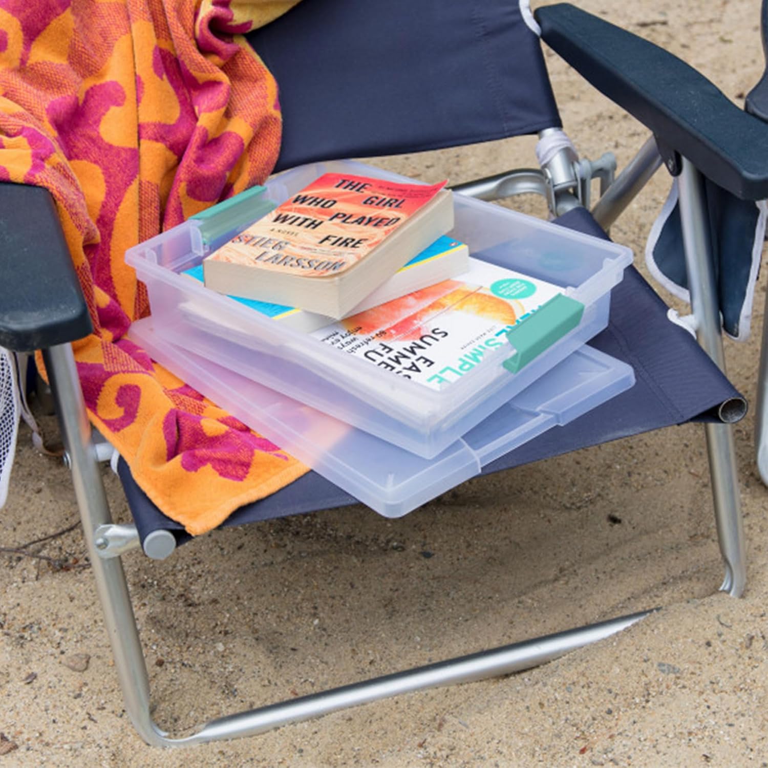The Large Clip Box is a great solution for storing and organizing smaller items in the home and office. The clear base and lid allow contents to be easily identified from any angle, and the tight-clasping latches ensure that the lid remains secure to the base. This storage box conveniently accommodates standard 8½”x11” paper and notebooks.