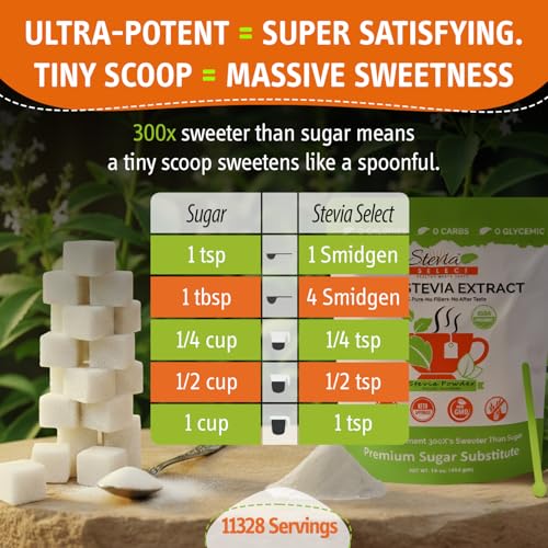 ULTRA-POTENT = SUPER SATISFYING. TINY SCOOP = MASSIVE SWEETNESS — 300x sweeter than sugar means a microscopic scoop sweetens like a spoonful. Pure stevia extract with no additives, no fluff. Smaller serving = sweeter win = better value.