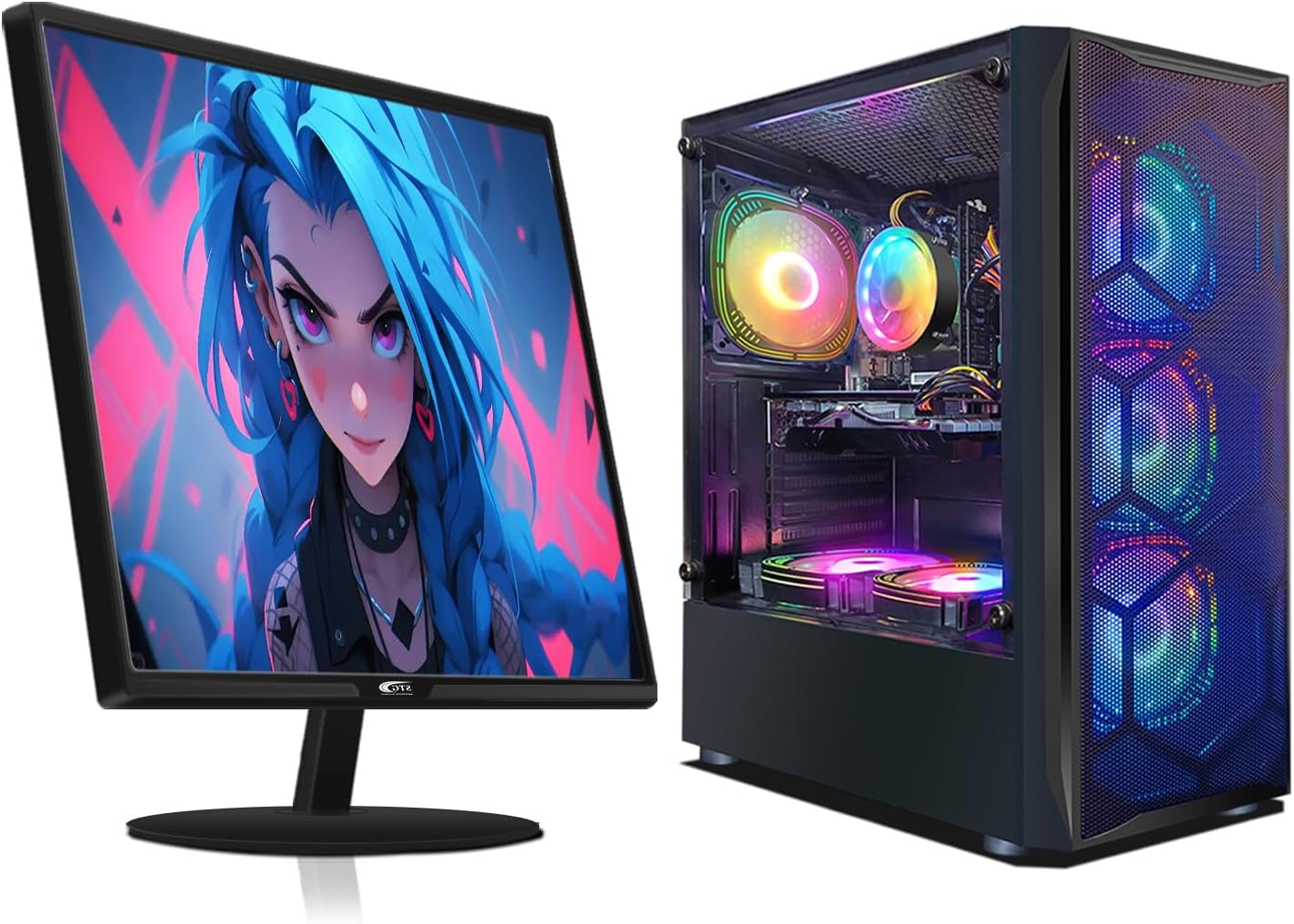 STGAubron Gaming PC Bundle with 24 Inch FHD LED Monitor-Radeon RX 580 8G, Intel Core I7 up to 3.9GHz,16G RAM, 512G SSD, RGB Fan x6, Windows 11 Home