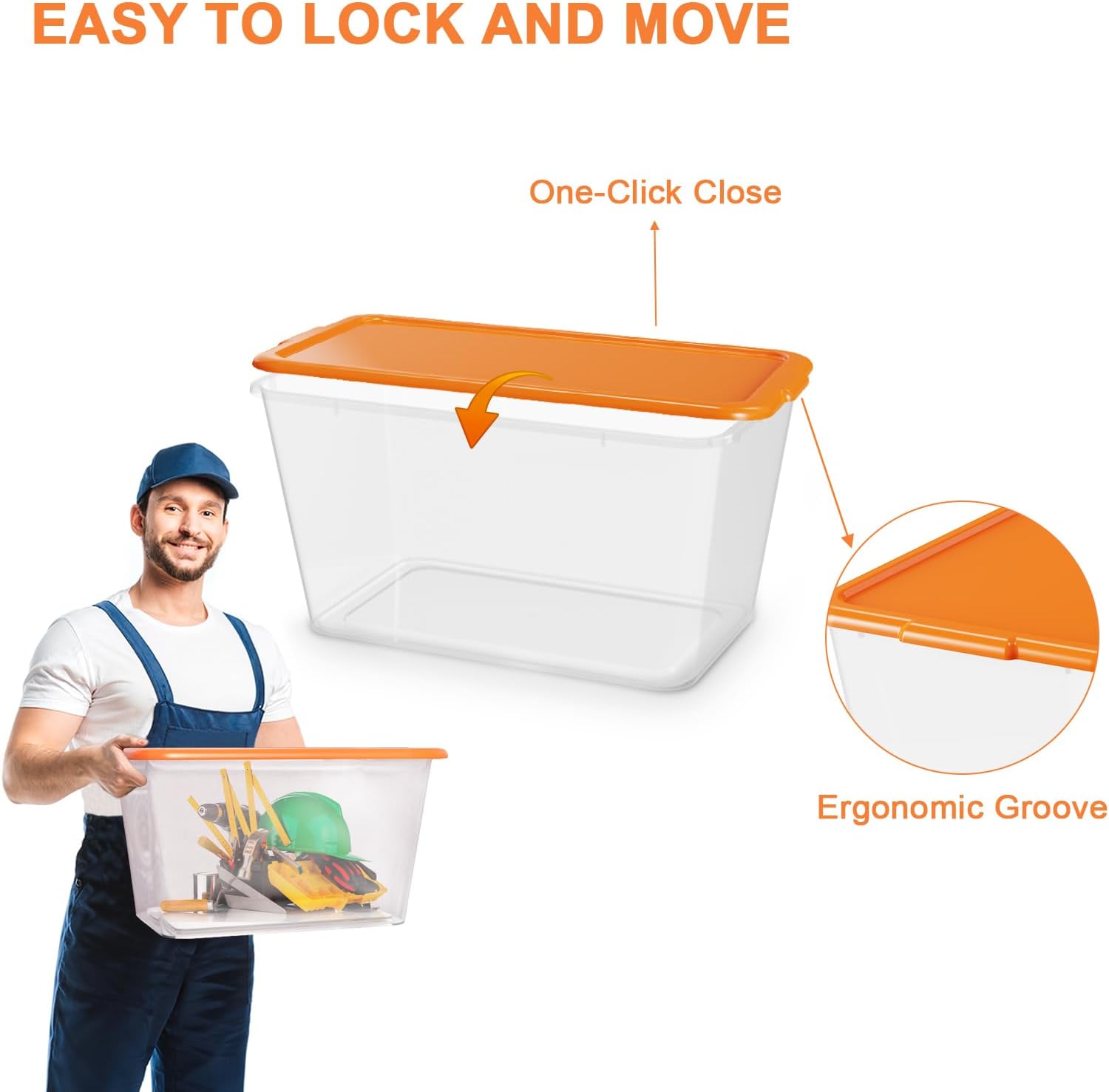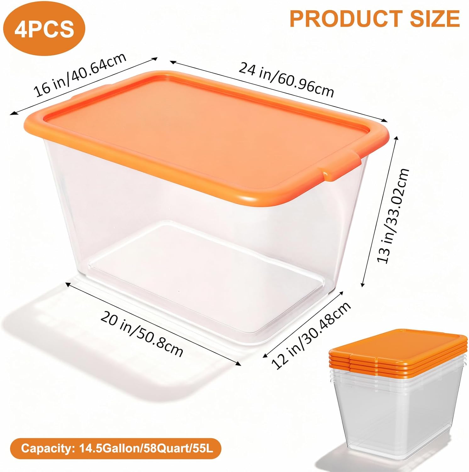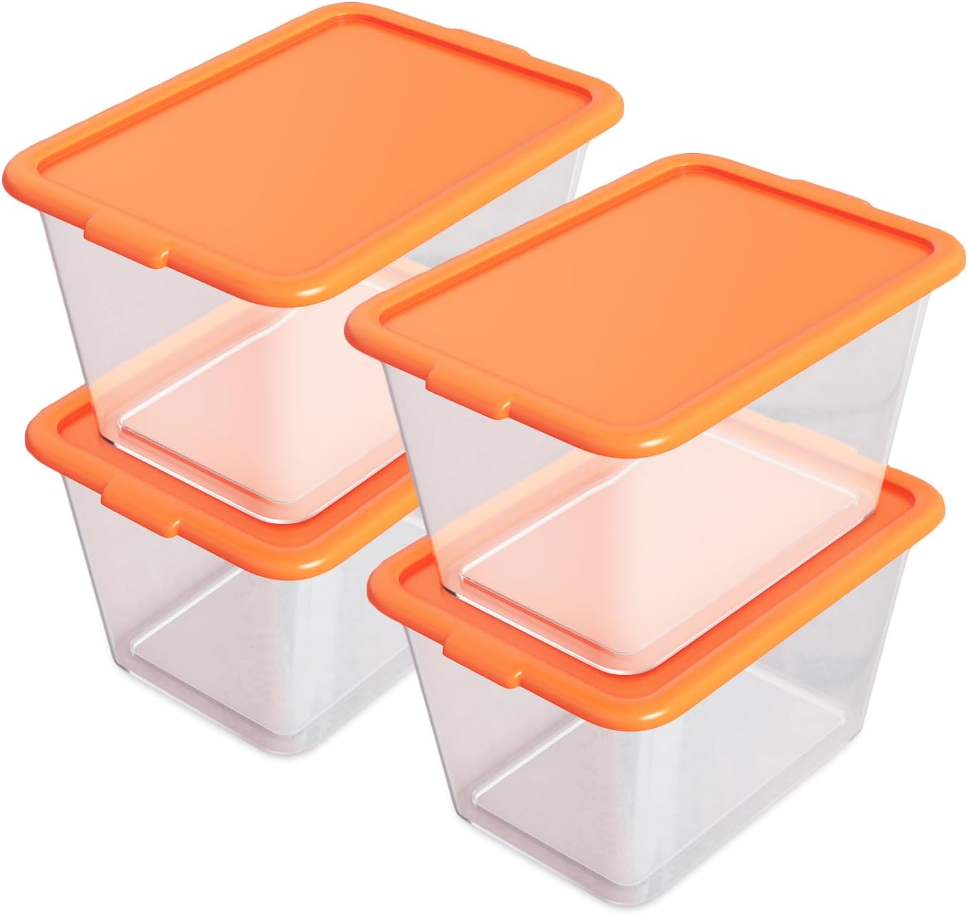 Storage Totes with Lids – Made in USA 14.5-Gallon (58-Quart) 4-Pack Orange Storage Bins with Lids Plastic Storage Containers Large Storage Boxes for Organizer Orange/Clear