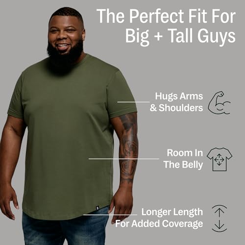 PREMIUM STRETCH JERSEY MATERIAL. Crafted with a blend of 95% Cotton and 5% Spandex, enjoy the coolness and breathability of 6oz premium quality stretch jersey, our no shrink big and tall t-shirts for men don’t lose shape, are easy to clean and provide long-lasting everyday wear.