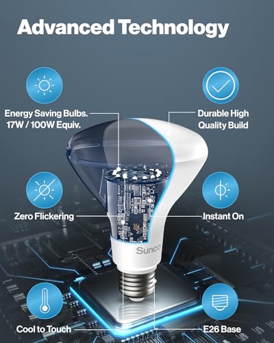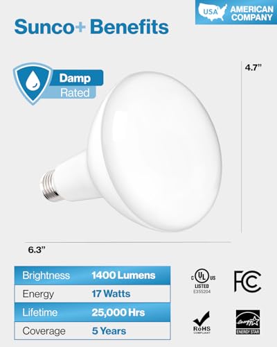 Sunco 50 Pack BR40 LED Light Bulbs, Indoor Flood Lights, Recessed Can Light Bulb, 1400 LM, 17W (100W Equivalent), 3000K Warm White, Dimmable, E26 Base, for Home, Bedroom, Kitchen UL