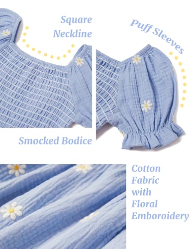 Sunny Spirit Girls Dress Spring Easter Maxi Summer Boho Cute Kids Short Sleeve Dresses for Girl 5-6T Light Blue Floral
