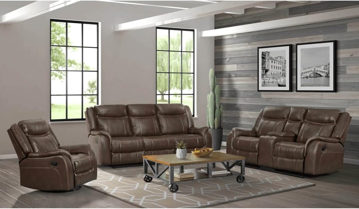 Specification: Sunset Trading SU-AV8604041-3PC Avant Reclining Living Room Set Brown Faux Leather – 3 Piece