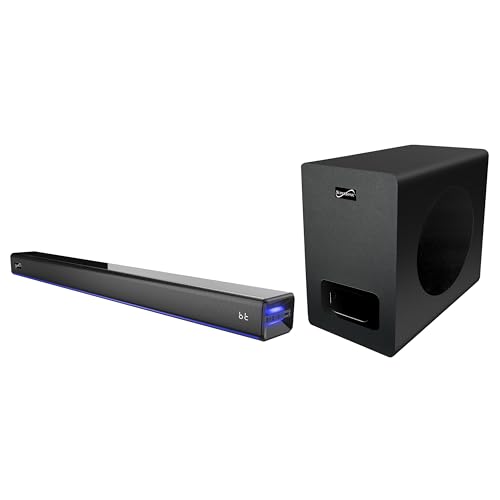 Supersonic SC-1425WSW 2.1 Channel Bluetooth Soundbar with Wireless Subwoofer, Ambient Lighting, HDMI ARC, FM Radio, USB, AUX, Optical Input,3 EQ Modes, 80W RMS, 10M Range- Home Theater Surround System