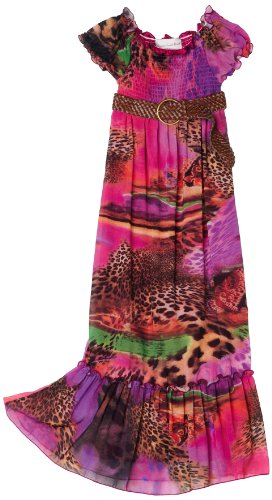 Sweet Heart Rose Big Girls’ Short Sleeve Maxi Dress with Attached Belt, Pink/Purple, 8